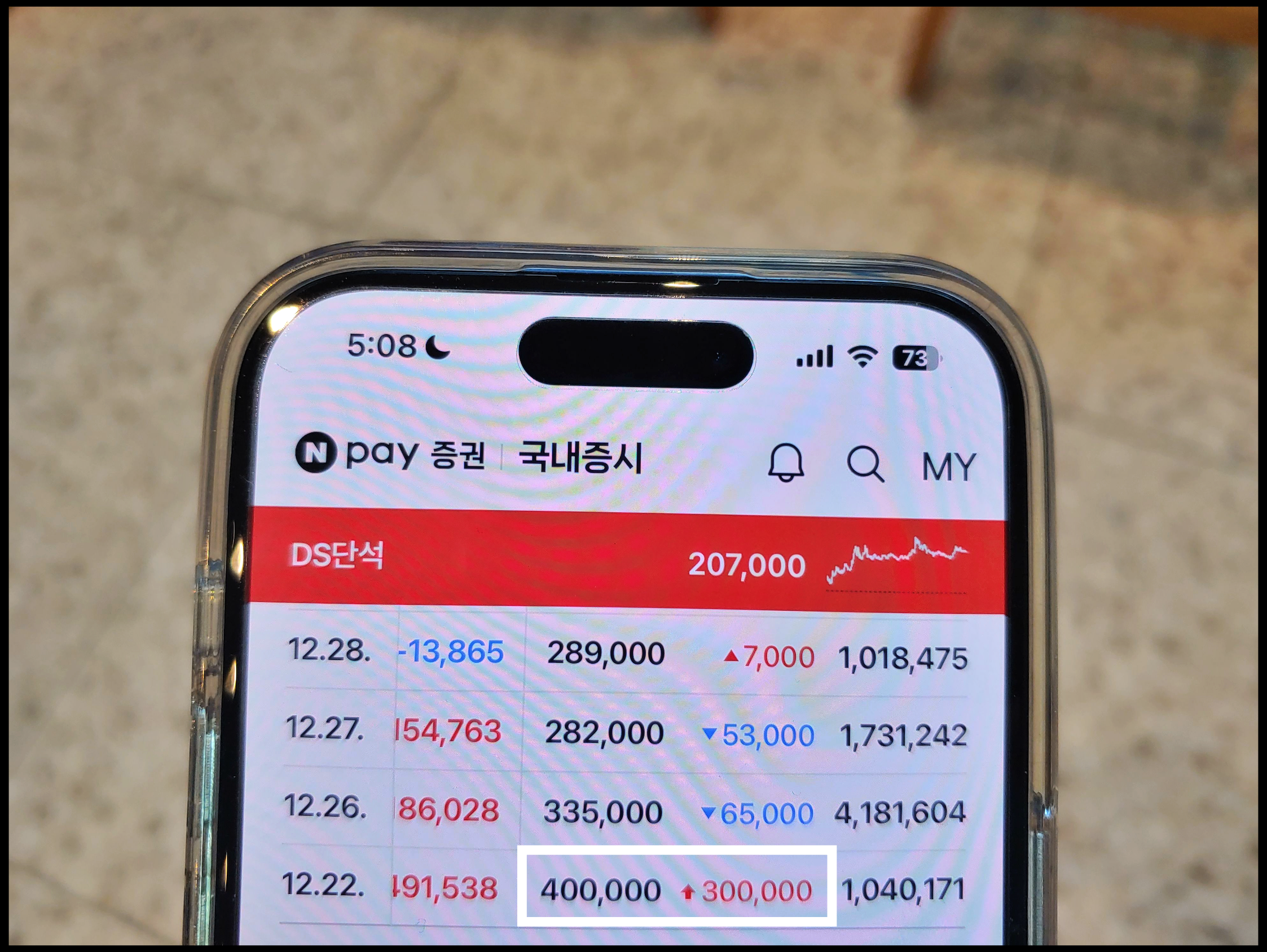 [사진 = 2023년 12월 22일 상장했던 DS단석 지금도 기억에 납니다. 공모가 100,000원이었는데 상장 첫 날 4배 오른 400,000원으로 오르면서 300% 인상률 나타내며 따따블 달성했습니다. 균등 최소 1주 배정 받으셨던 분은 1주 당 300,000원 전후의 금액을 이득 보셨을 겁니다. 상장 두 번째 날에는 종가 335,000원 기록했으나 한때 495,000원까지 치솟았습니다. 해당 공모주 배정 받았던 일반 청약자들의 매도 시점은 제각각 다를 겁니다. 제가 DS단석 지금도 기억에 남는 이유는 균등 1주 배정 받았기 때문입니다. 최근에 가장 기분 좋았던 공모주로 기억합니다. (C) 네이버 앱]