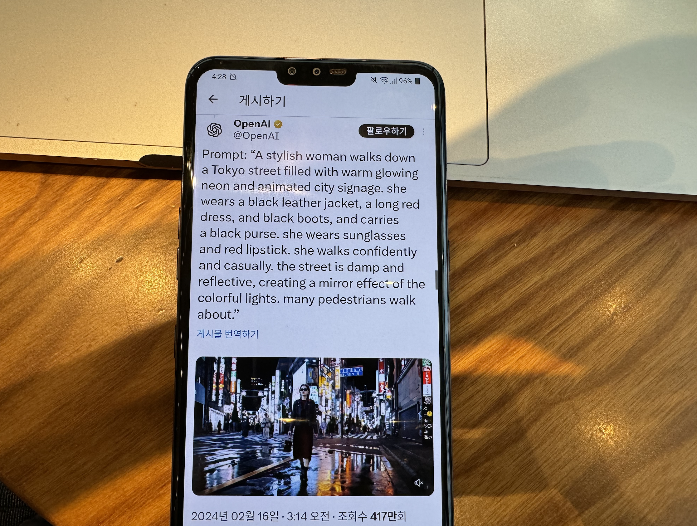 [사진 = Open AI 공식 트위터에서는 국내 시간 기준으로 2월 16일 오전 Sora AI 선보이면서 해당 AI로 제작된 도쿄 영상을 선보였습니다. 어느 세련된 스타일의 여성이 도쿄의 밤거리를 걷는 모습입니다. 블랙 색상의 가죽 재킷, 레드 롱 드레스, 블랙 부츠를 착용한채 말입니다. 그런데 이 영상은 실제 모습이 아닙니다. 여성과 도쿄의 모습은 AI로 구현됐습니다. 이러한 소라 AI 공개는 현재 트위터에서 조회부 417만 회 기록됐습니다. 해외에서 관심도가 높은 상황입니다. (C) Open AI 공식 트위터]