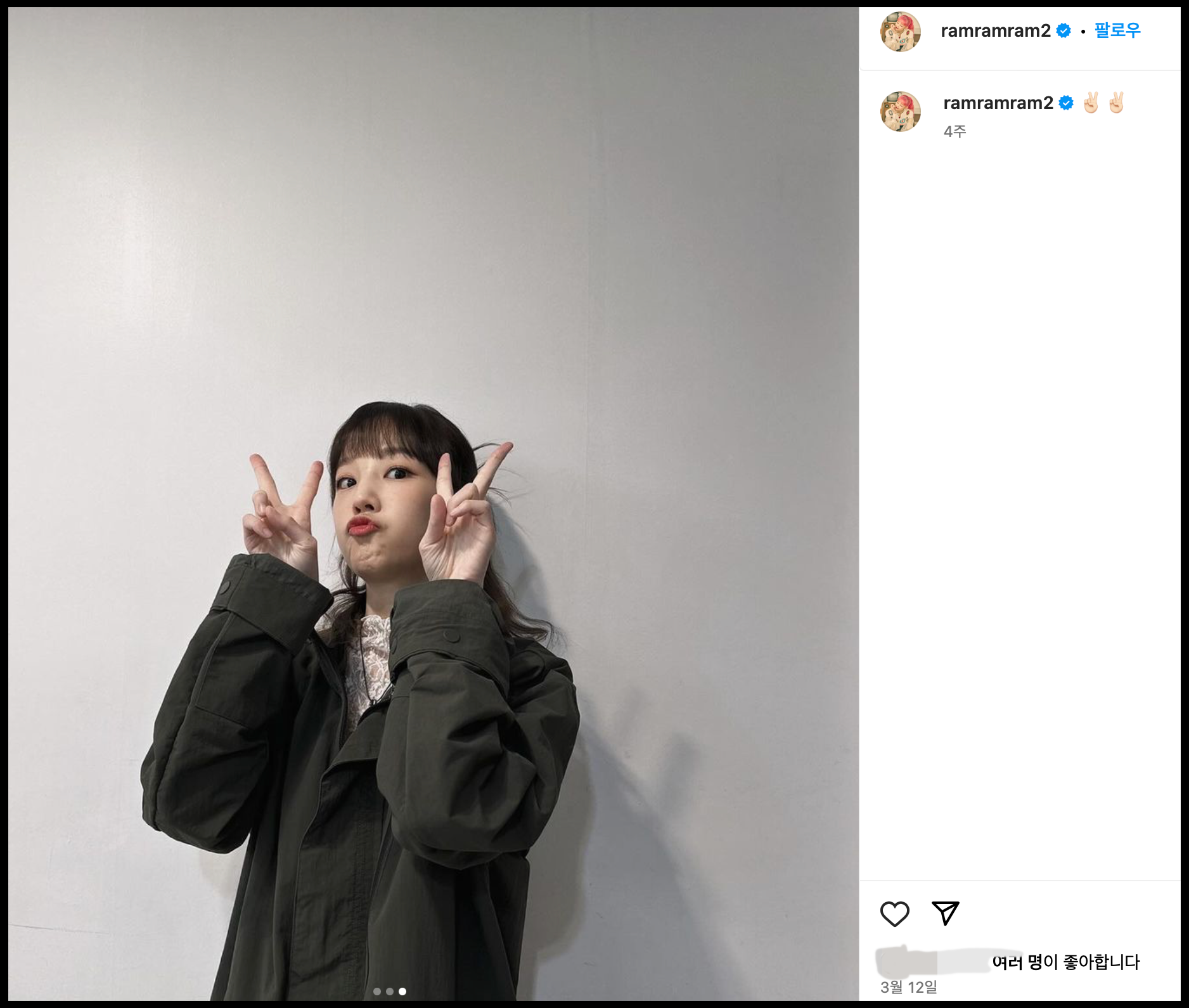[사진 = 박보람 인스타그램 마지막으로 올라온 모습. 한 달전에 양손으로 브이 포즈 취하는 모습을 SNS에 게시했던 사진은 고인이 대중들에게 자신의 모습을 마지막으로 공개한 순간이 됐습니다. 이때가 신곡 발매를 앞두던 시점이었습니다. 고인은 지난 4월 3일 신곡 '보고싶다 벌써' 노래를 선보였습니다. 이 노래가 마지막 신곡이 될 줄은 아무도 예상하지 못했습니다. (C) 박보람 인스타그램]