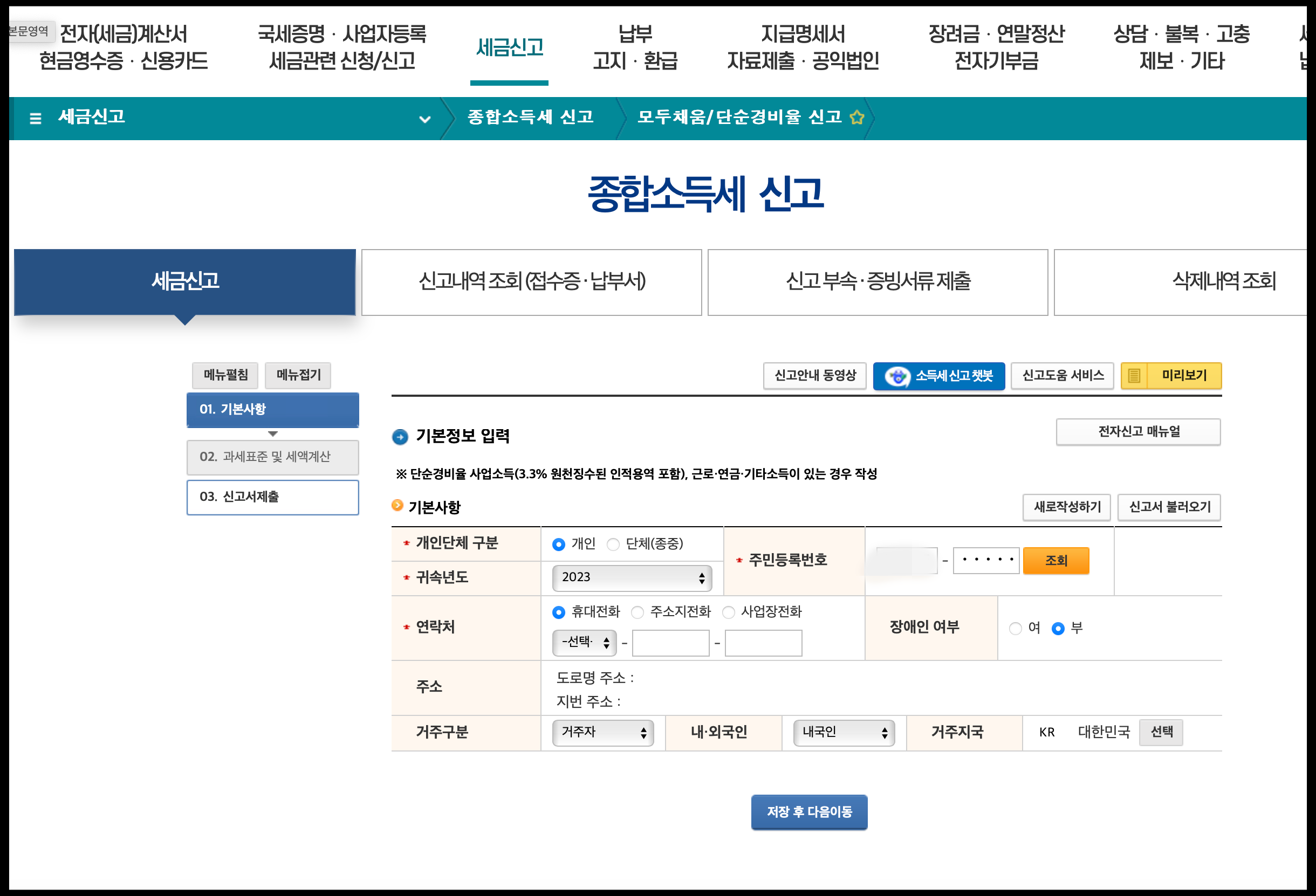 (2) 2번 연결하면 종합소득세로 넘어갑니다. 1번 연결하면 됩니다.