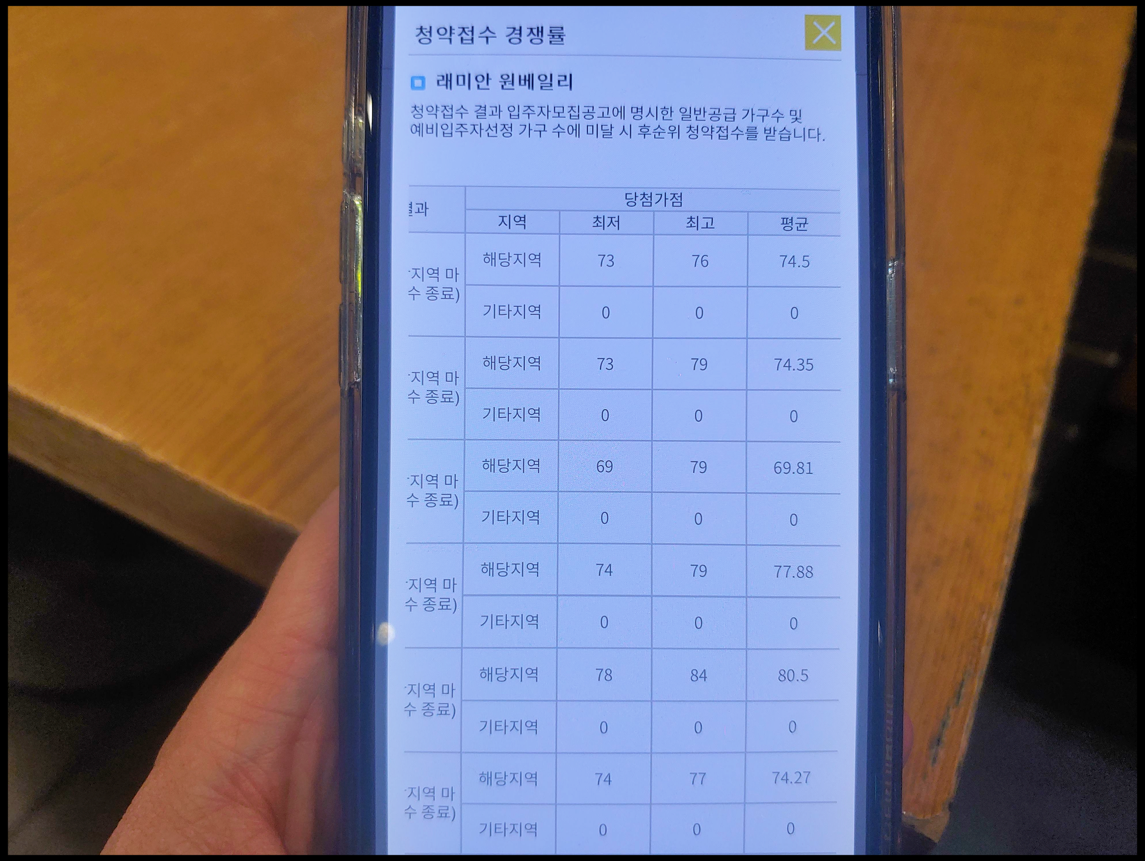 -2021년 6월 본 청약 당시 청약통장 만점자 신청했던 곳(74타입), 당시 74타입 청약통점 가점은 최소 74점
