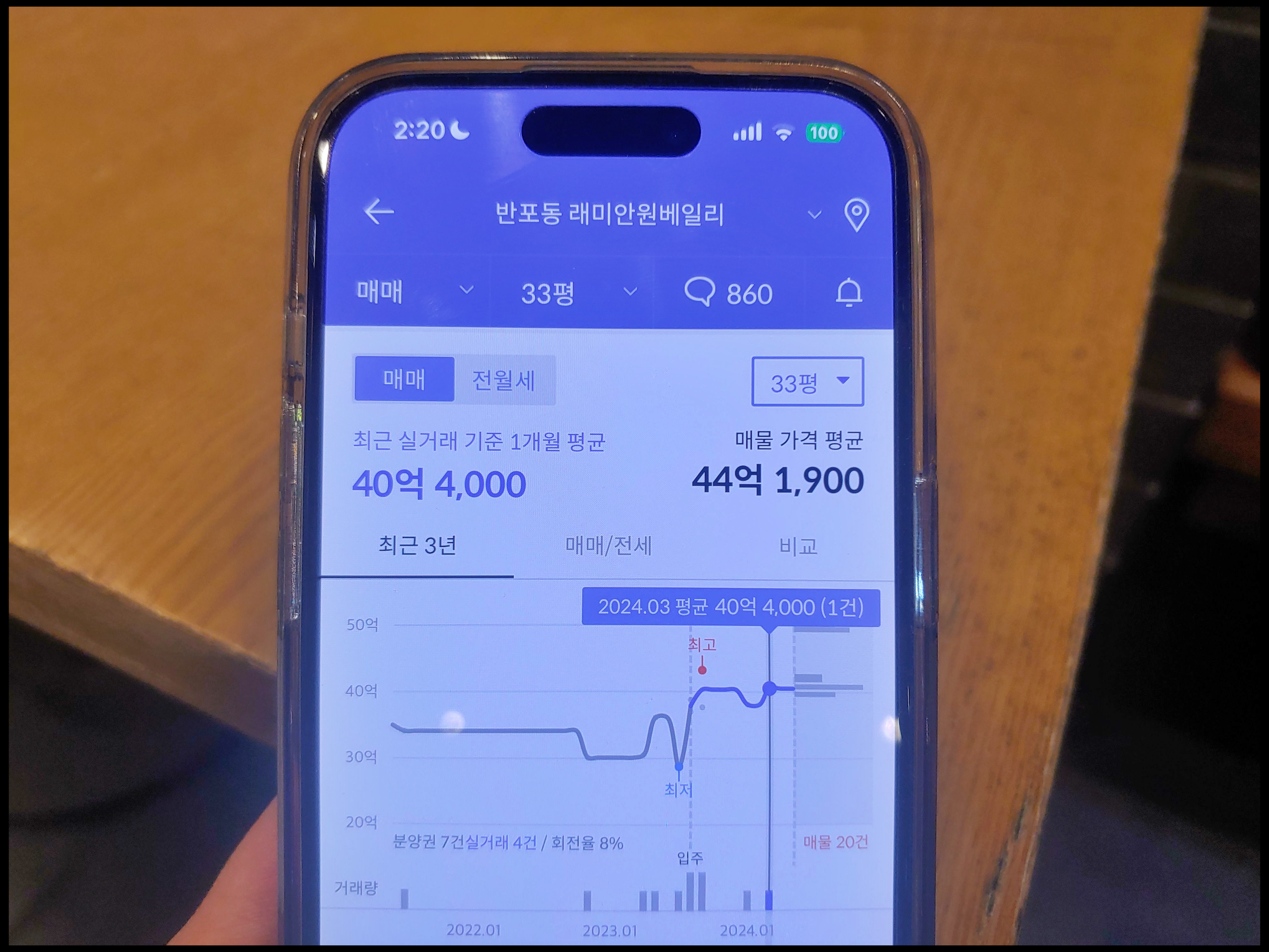 [사진 = 반포동 래미안 원베일리 호갱노노 앱에서는 서초구 일간 방문자 1위라고 합니다. 33평(84타입) 최근 실거래 기준 1개월 평균 40억 4,000만 원입니다. 이번에 줍줍으로 나온 1세대 분양가 19억 1,695만 5,000원이라는 점을 놓고 보면 시세 차익 20억 원 약간 넘는 금액입니다. (C) 호갱노노 앱]