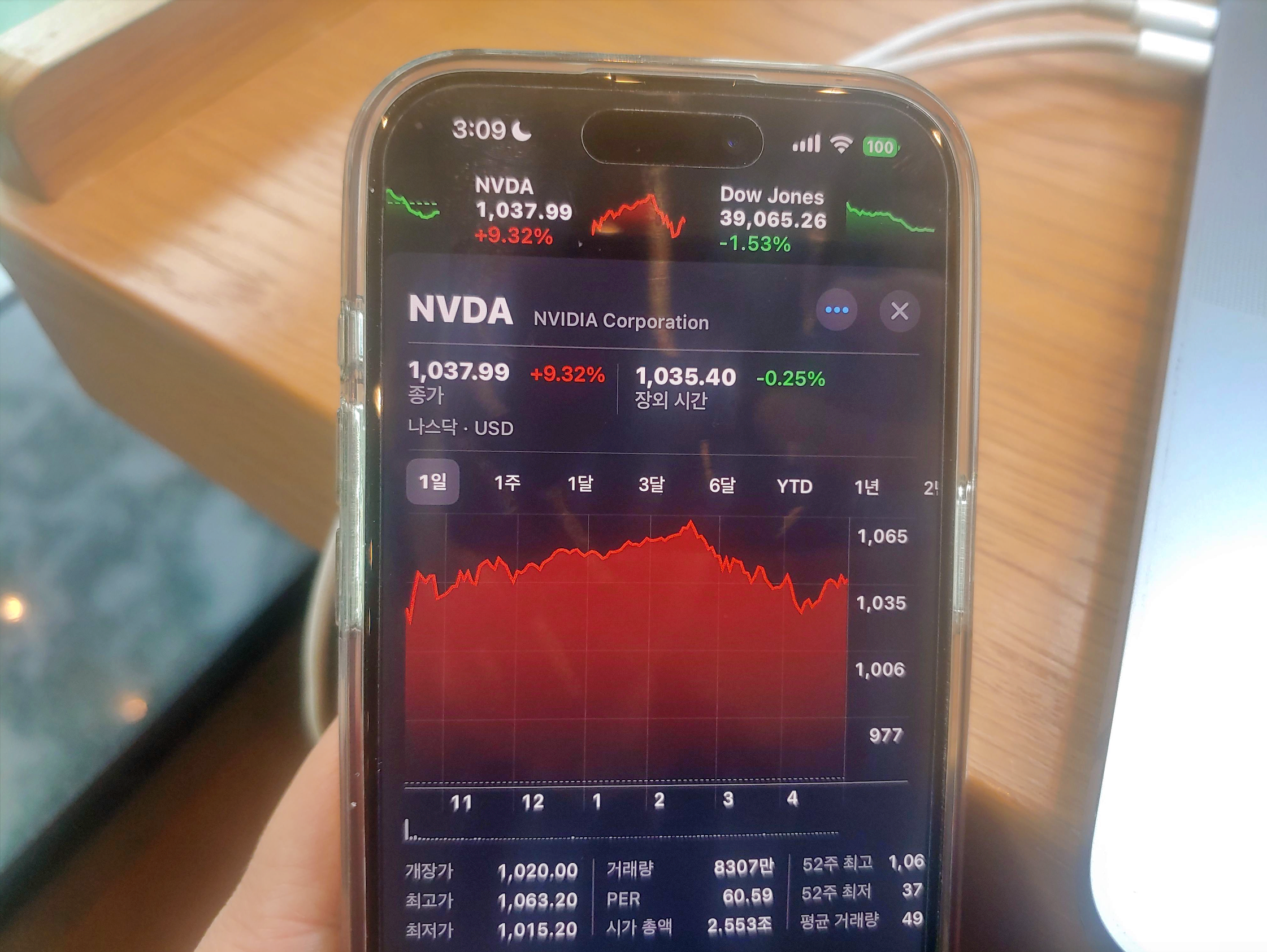 And 엔비디아 : 1,037.99달러(+9.32%)