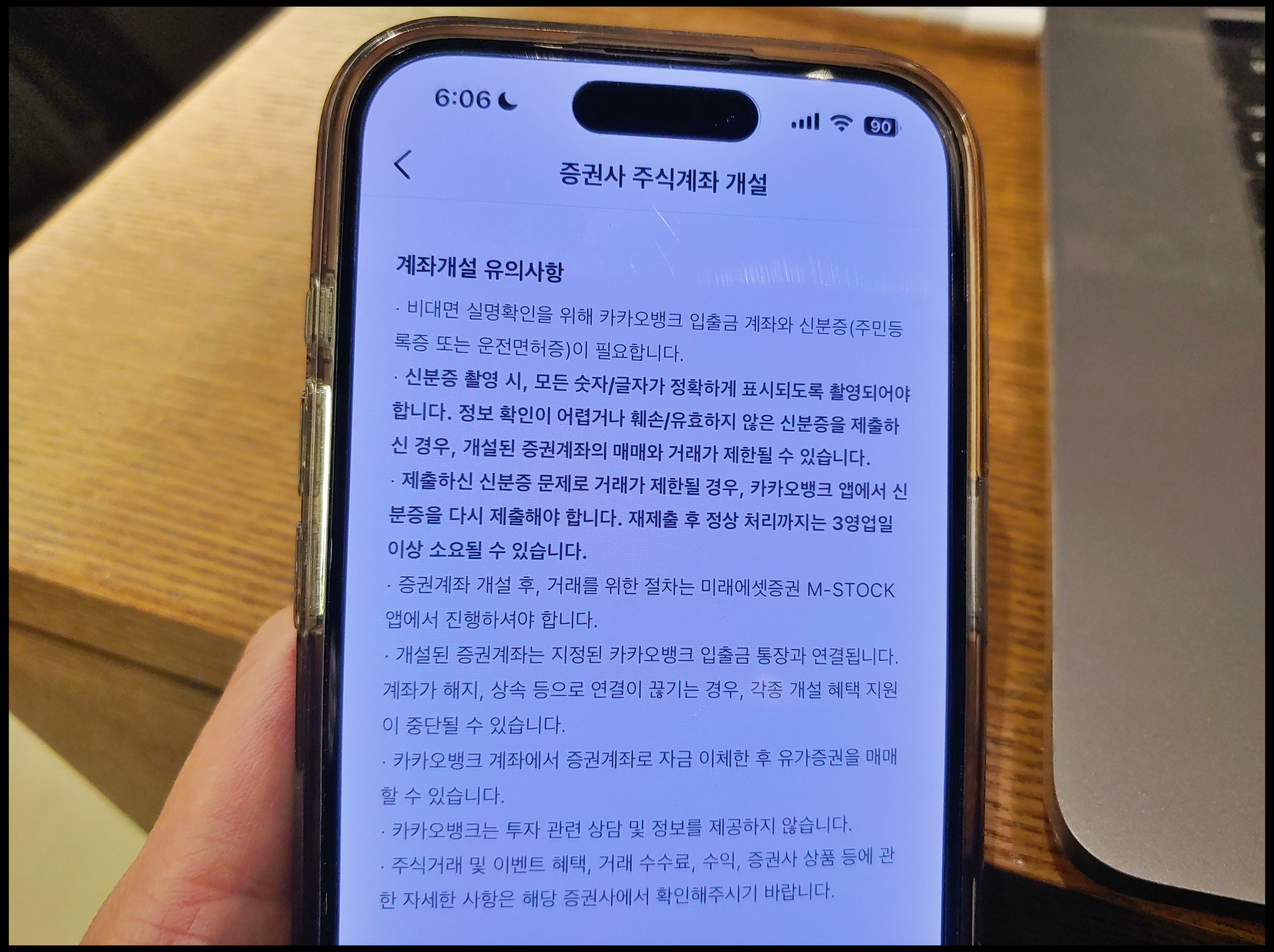 [사진 = 카카오뱅크 통해서 미래에셋증권 계좌개설 진행 시 혜택 받을 수 있습니다.(2024년 12월 31일까지) 혜택 3가지 이렇습니다. (1) 개설축하금 1만 원 (2) 위탁거래수수료 국내 및 해외 우대 (3) 웰컴 이벤트 최대 20만 원 입니다. 만약 가입하실 분은 반드시 계좌개설 유의사항 읽으셔서 진행하시면 됩니다. 특히 카카오뱅크 통해서 만들어진 증권계좌는 지정된 카카오뱅크 입출금 통장과 연결된다는 점을 참고하시면 됩니다. (C) 카카오뱅크 앱]