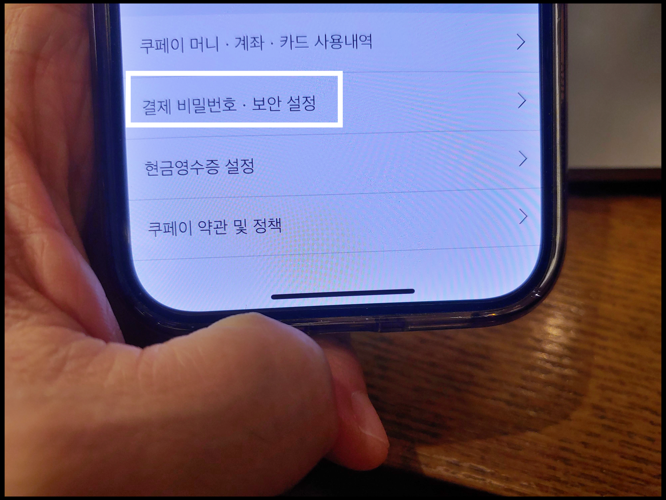 [사진 = '결제수단 및 쿠페이' 안으로 들어가면, 모바일 화면 하단에 '결제 비빌먼호 및 보안 설정' 있습니다. 생체인증 여부 체크하셔야 합니다. 이 부분은 비밀번호 6자리 입력한 뒤 Face 인식 신속하게 이루어졌습니다. (C) 쿠팡 앱]