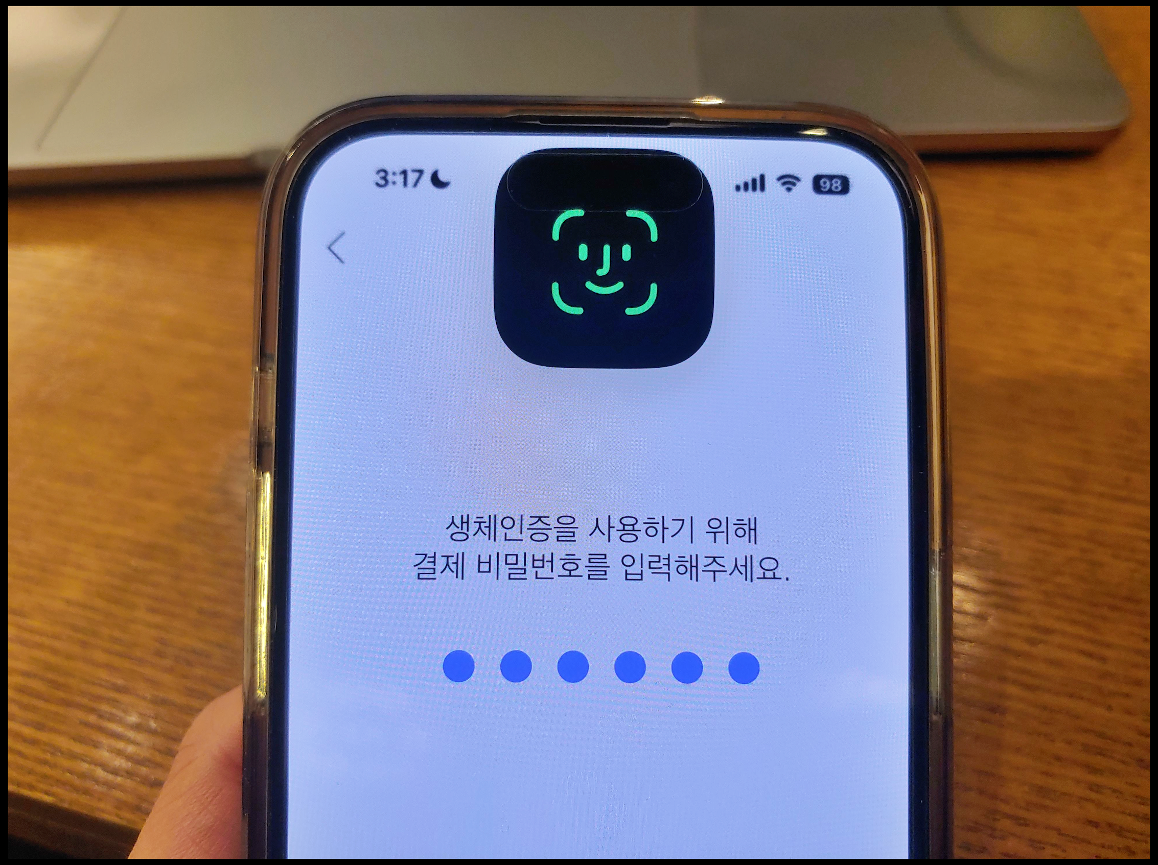 -결제 비밀번호 및 보안 설정에서 생체인증 적용(비밀번호 입력하는 것보다 더 빠르기 때문)