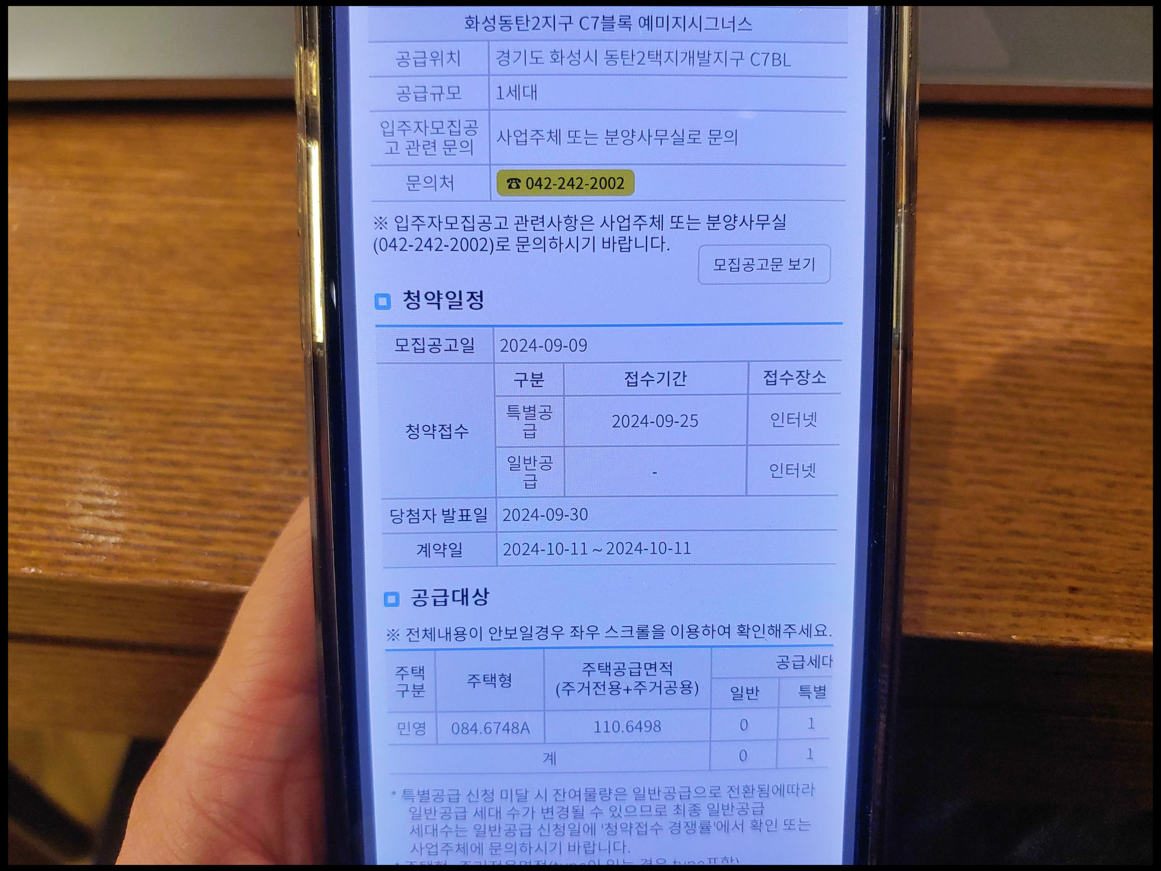 [사진 = 화성동탄2지구 C7블록 예미지시그너스 줍줍 청약 일정 이렇습니다. 오는 9월 25일 수요일 특별공급 접수일 입니다. 당첨자 9월 30일 월요일 발표되며, 10월 7일 월요일 서류접수를 마친 뒤, 10월 11일 금요일 계약체결하는 일정입니다. 이번에 특별공급 신혼부부 1세대 계약취소주택 줍줍 나왔습니다. (C) 청약홈 앱]