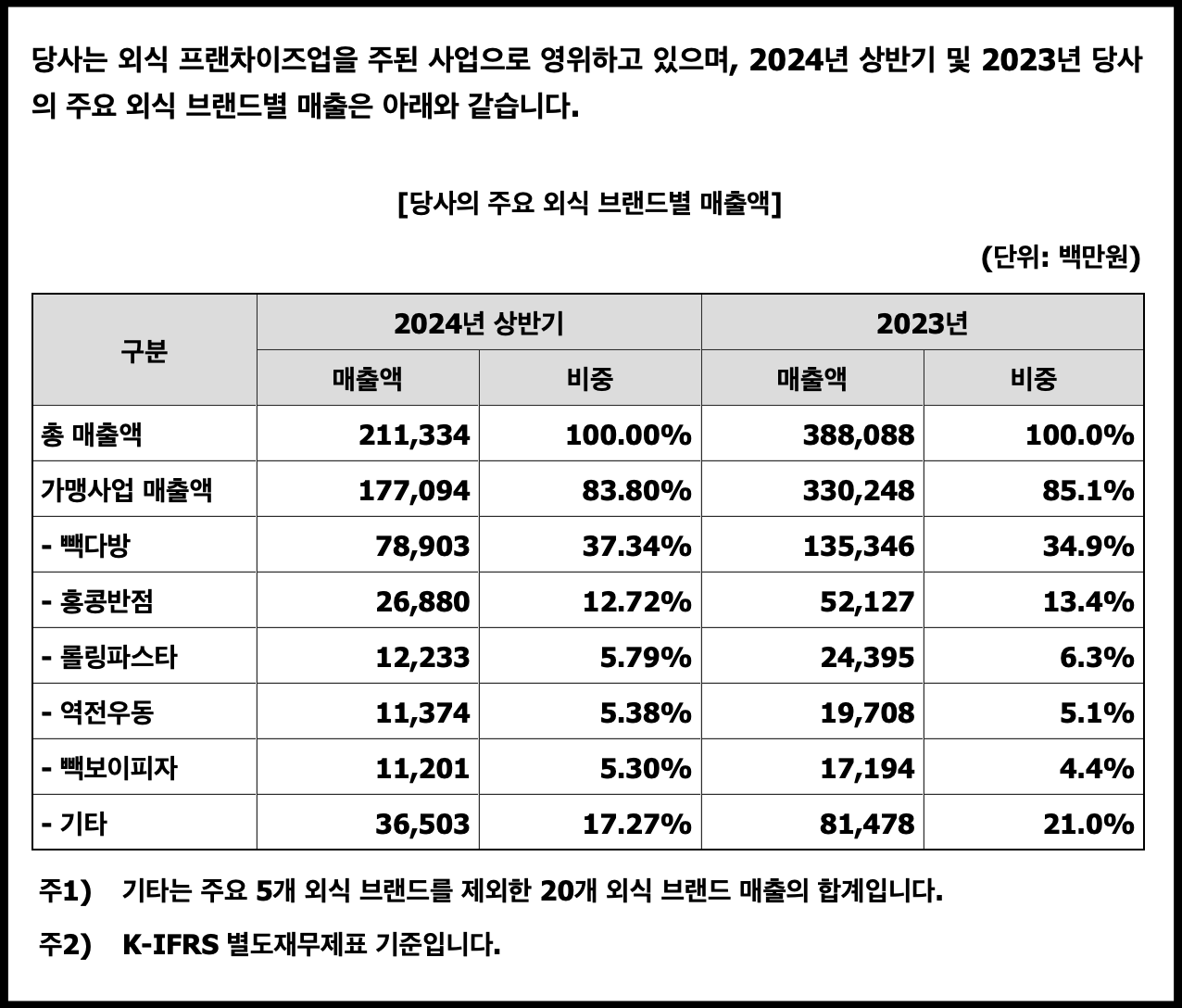[사진 = 제가 주로 방문하는 더본코리아 프랜차이즈들 음식. 홍콩반점과 역전우동은 제가 항상 맛있게 음식 먹는 곳들입니다. 앞으로도 합리적인 가격으로 음식 잘 나왔으면 하는 바람입니다. 실제로 더본코리아 상장 앞두고 공개된 증권신고서를 보면 홍콩반점과 역전우동 매출이 더본코리아 브랜드 내에서 2위와 4위입니다. 1위 빽다방, 3위 롤링파스타, 5위 빽보이피자 입니다. 해당 기업의 매출 비중을 높이는 브랜드들입니다. 특히 빽다방이 더본코리아 매출 비중의 3분의 1을 차지합니다. (C) 나이스블루]