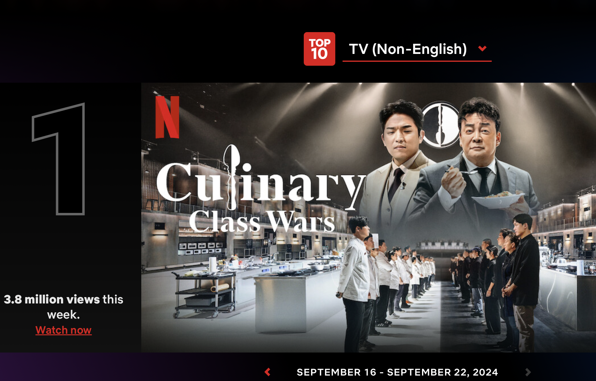 [사진 = 넷플릭스 흑백요리사 글로벌 TOP10 비영어권 1위 달성했습니다. 9월 16일부터 22일까지 380만 시청 기록이 나왔습니다. 지난 9월 17일 1~4화 공개되었는데, 1주차가 비영어권 1위입니다. 지난 9월 27일 5~7화 공개되었으며 앞으로 더 많은 나라에서 입소문을 얻으며 세계 누리꾼들의 극찬을 받을 것으로 기대됩니다. (C) Netflix Tudum TOP10 Homepage]
