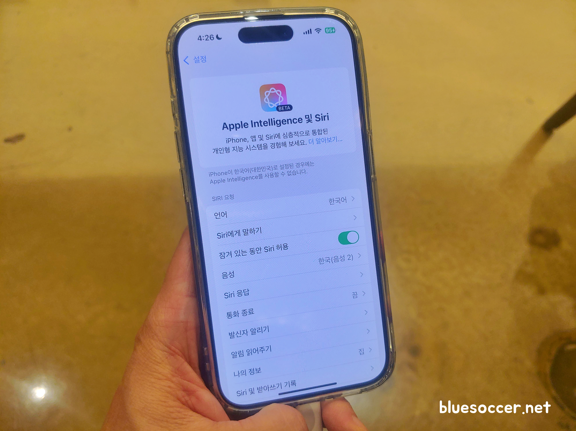 -애플 인테리전스 한국어 정식 출시는 내년 4월 이후 예정. 그 일부 기능이 iOS18.1 통해서 등장