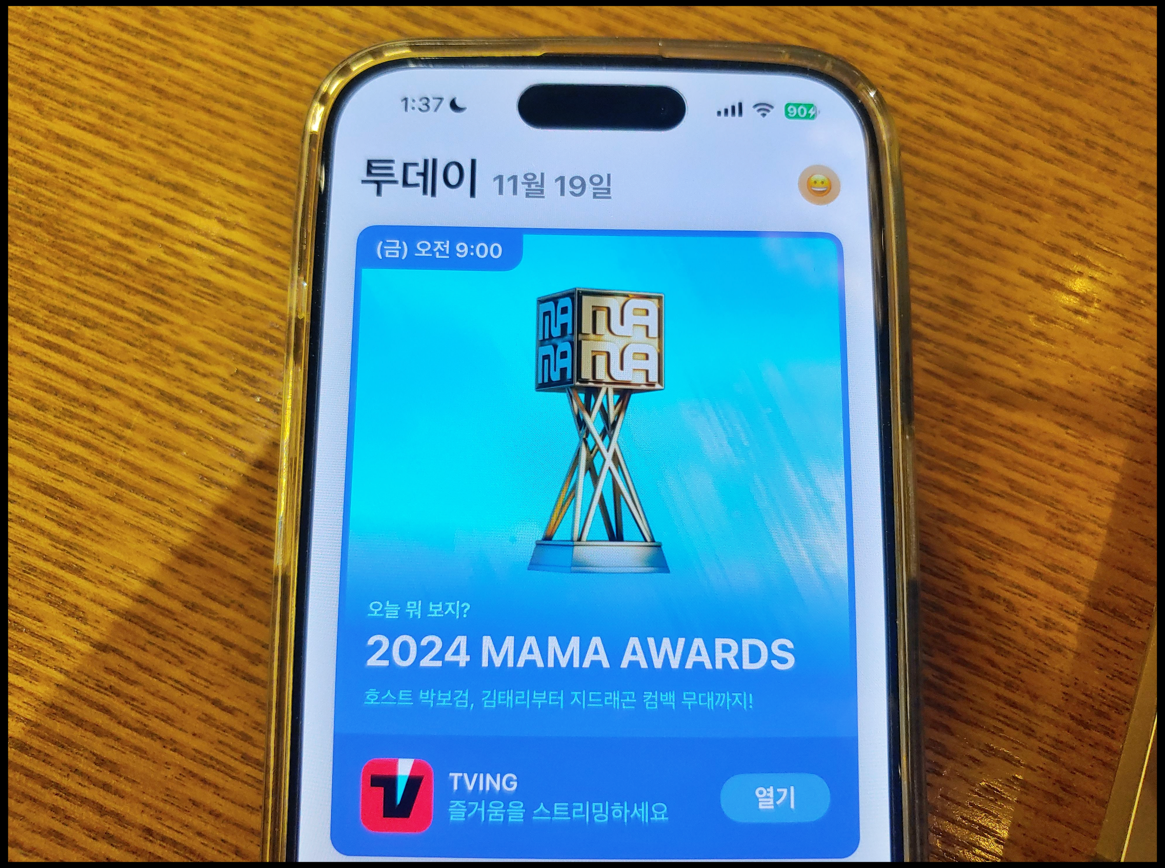 [사진 = 애플 앱스토어에서 2024 MAMA AWARDS 소개되는 모습을 볼 수 있습니다. 해당 시상식 중계하는 티빙 앱을 알리기 위해서입니다. 이 시상식은 Mnet이 주최합니다. 국내에서 Mnet 프로그램 본방 및 재방송 시청 가능한 OTT는 티빙입니다. 이번 시상식이 해외에서 펼쳐지는 특성상, 티빙으로 시상식 지켜보는 한국인이 많을 것으로 예상합니다. (C) 애플 앱스토어]