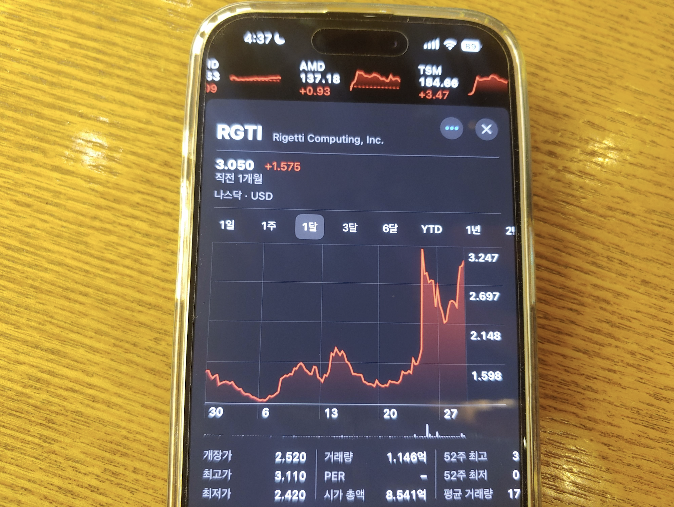 [사진 = 리게티 컴퓨팅 주가 최근 1개월, 6개월 동안의 흐름. 최근 크게 올랐다가 조정을 받았으나 다시 올랐습니다. (C) 아이폰 주식 앱]