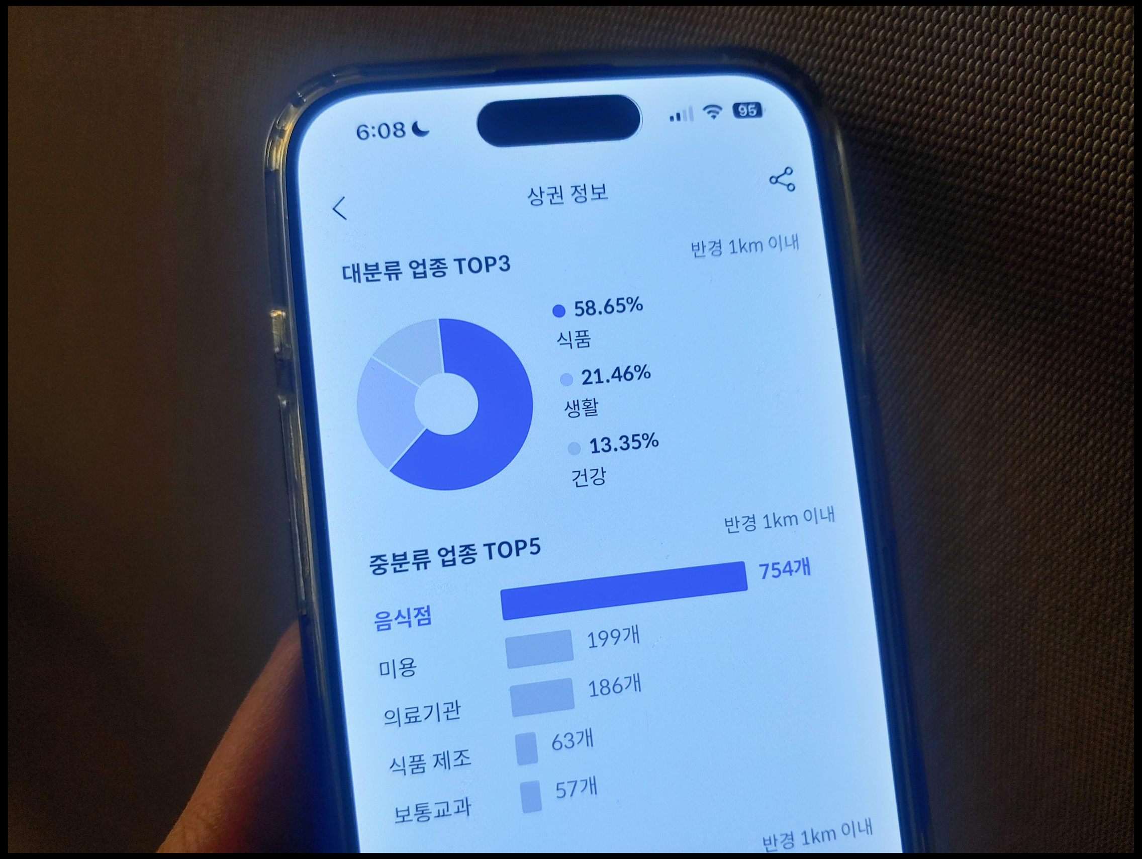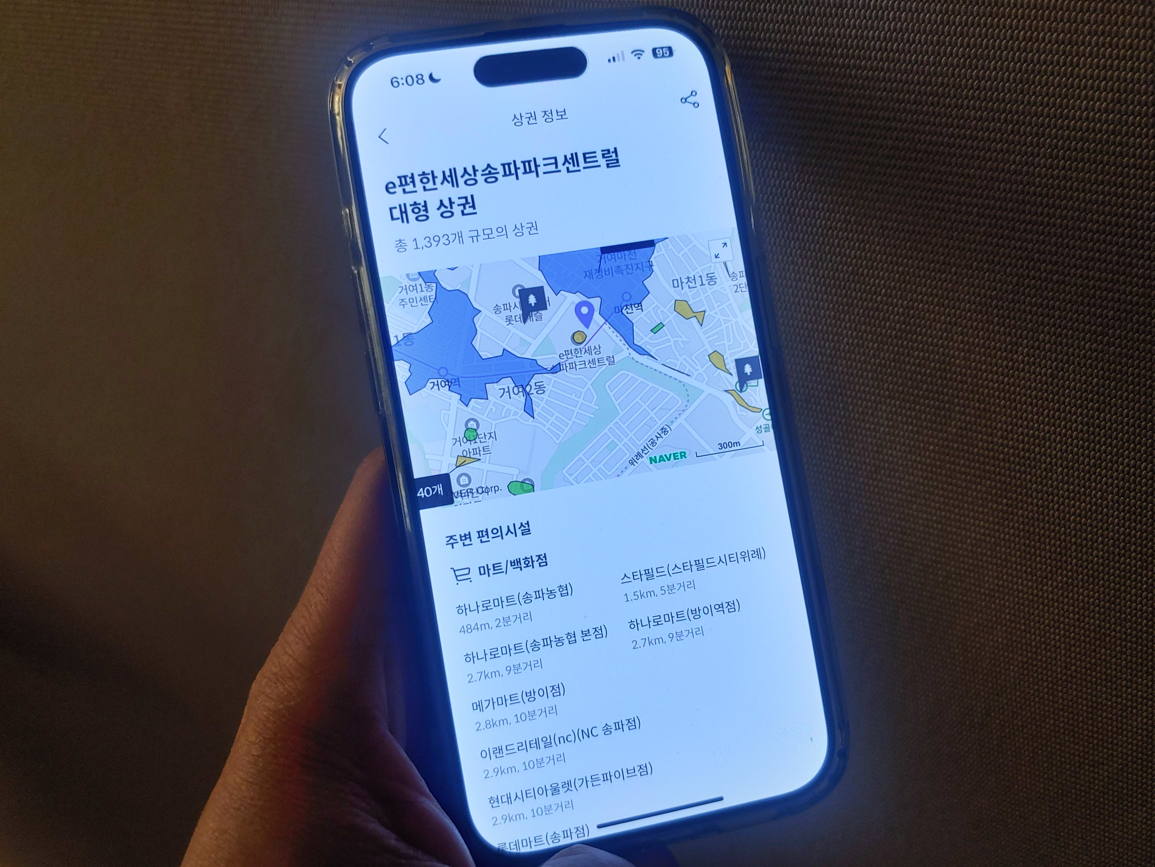 [사진 = 호갱노노에서는 이곳이 대형 상권으로 분류됐습니다. 주변에 상점이 많습니다. 대형 상점 중에서 스타필드 시티 위례와 가까운 편이며, 오는 2026년 위례선 개통된다면 해당 상점으로의 접근성이 더 편리할 것으로 예상됩니다. 반경 1km 이내에 음식점이 많이 있는 편이며 학원 60개 있다고 합니다. (C) 호갱노노 앱]