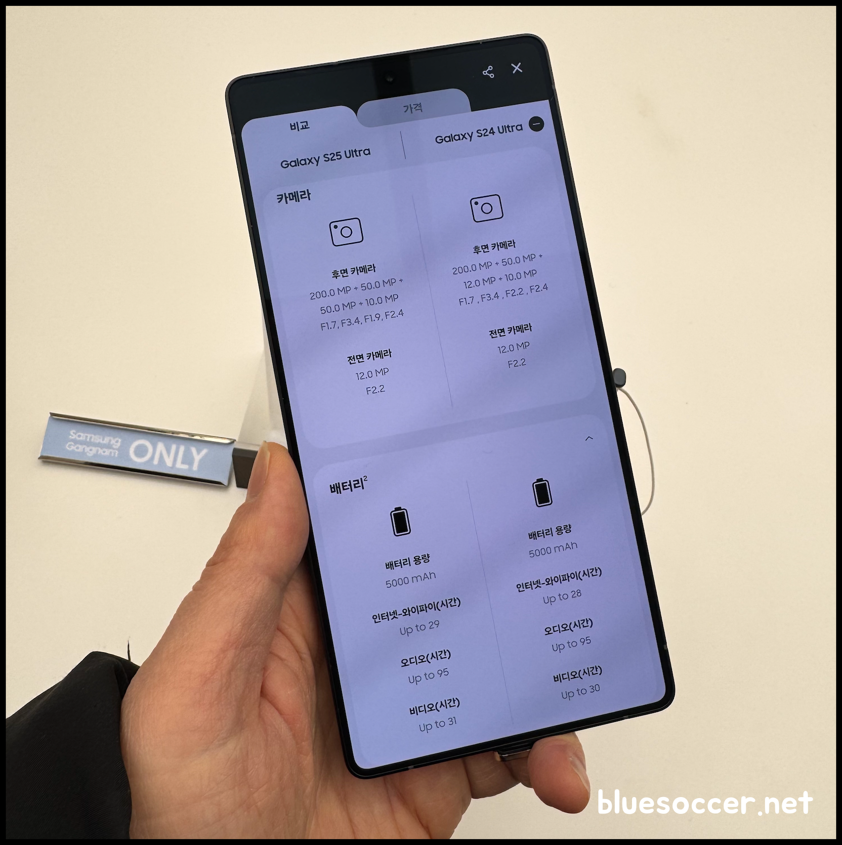이번에는 갤럭시 S25 울트라 색상 티타늄 그레이 실물 봤습니다. 블랙 계열 2종에 비해서 메탈 느낌이 생생하게 표현됐습니다. 제품을 바라보는 각도에 따라 어떤 쪽은 옅어 보이는데 다른 쪽은 진하게 보입니다. 언뜻보면 화이트 실버와 비슷했는데, 화이트 빛깔이 아닌 모습을 봐선 티타늄 그레이가 맞는 것으로 판단됩니다.