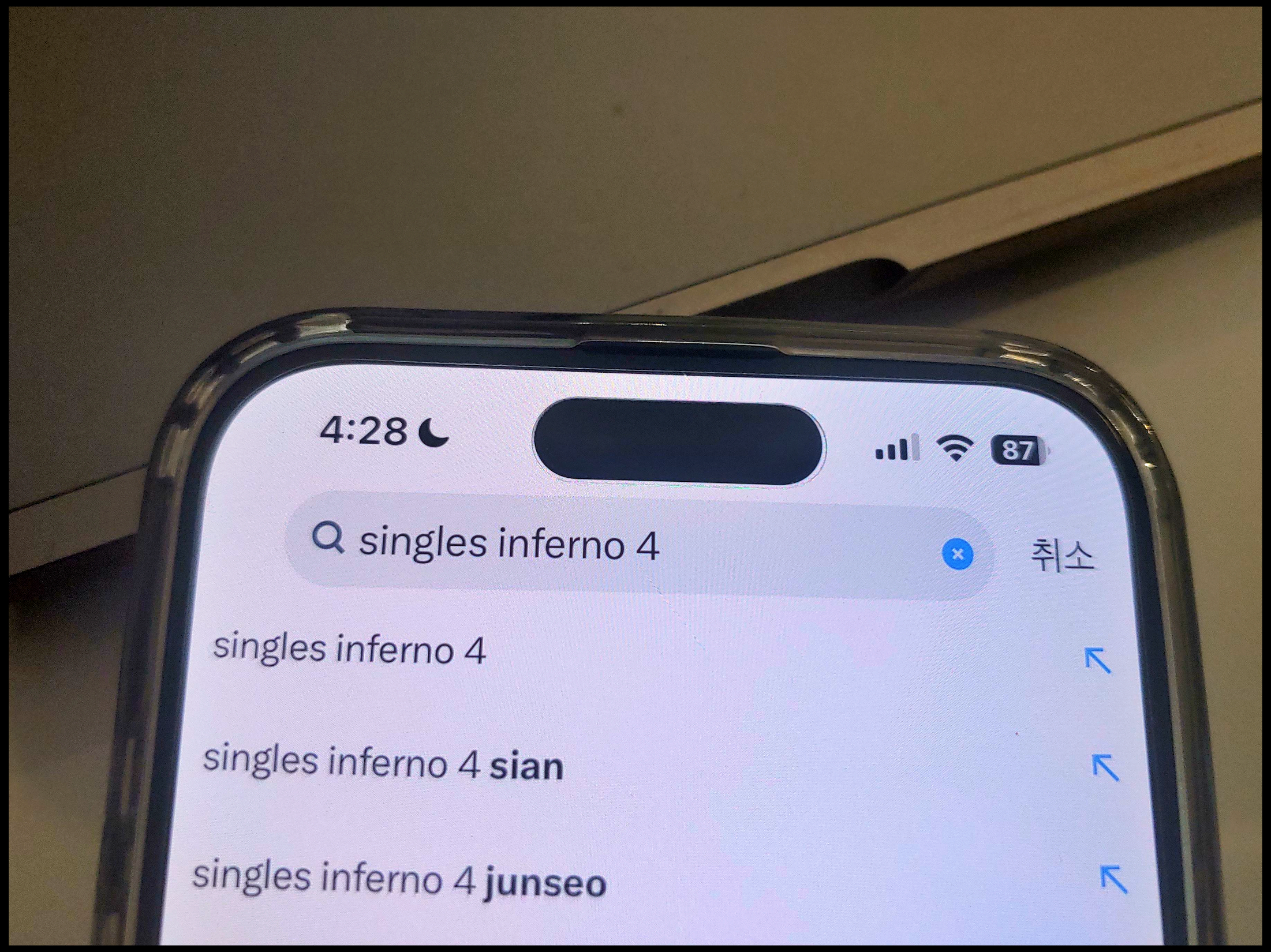 [사진 = X(구 트위터)에서 솔로지옥4 영어명 Singles Inferno 및 Lee Sian 입력했을 때 연관검색어에 육준서 뜨는 모습을 볼 수 있습니다. 이시안 육준서 천국도에서 함께하는 모습이 영어권 국가 시청자들에게 화제를 모았던 것으로 보입니다. (C) X(구 트위터 앱)]