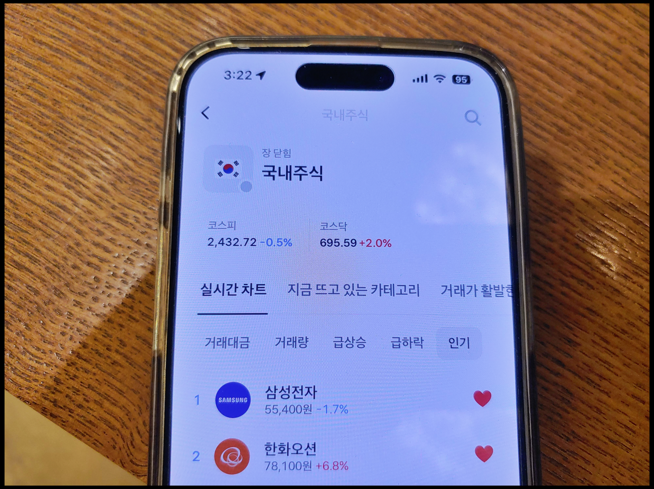 [사진 = 토스 국내주식 인기 항목 상위권에 한화오션이 뜨는 모습을 최근에 꽤 보는 것 같습니다. 지난 1년 사이에 196.7% 올랐습니다. 최근에는 연기금에서 11일 연속으로 사고 있다고 합니다. 외국인들의 매수세도 뚜렷합니다. 이렇다 보니 개인 투자자들의 관심이 큰 것 같습니다. 해당 기업과 더불어 한화 방산 관련 종목들도 국내 증시에서 존재감이 돋보이는 것 같습니다. 한화에어로스페이스, 한화시스템 말입니다. (C) 토스 앱]