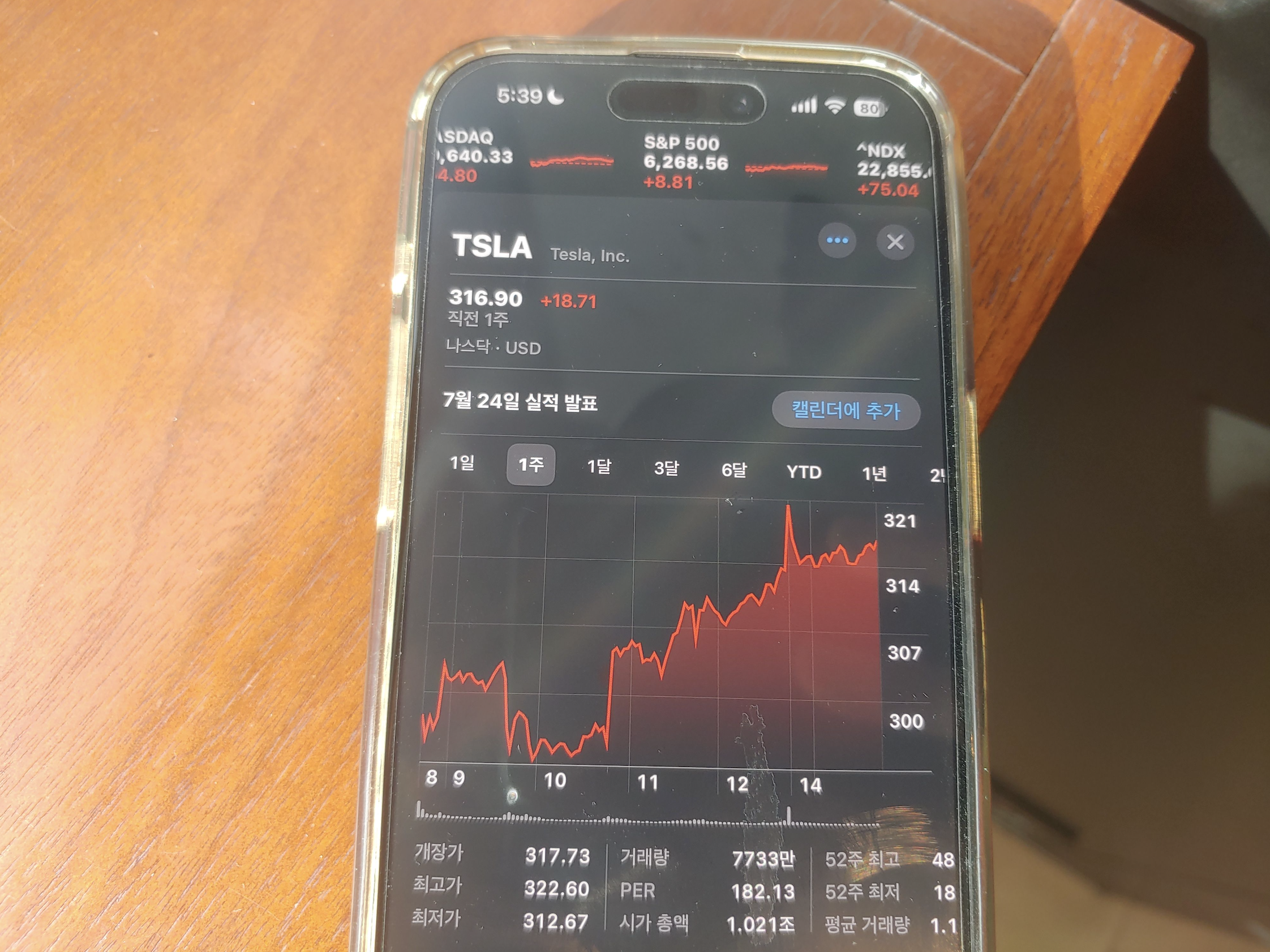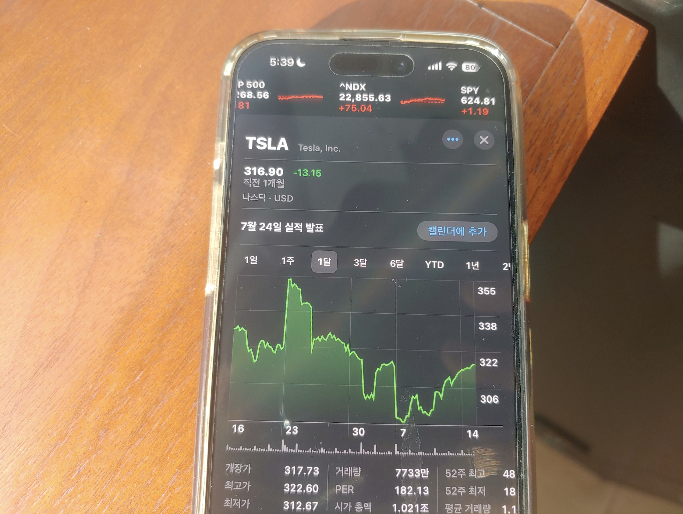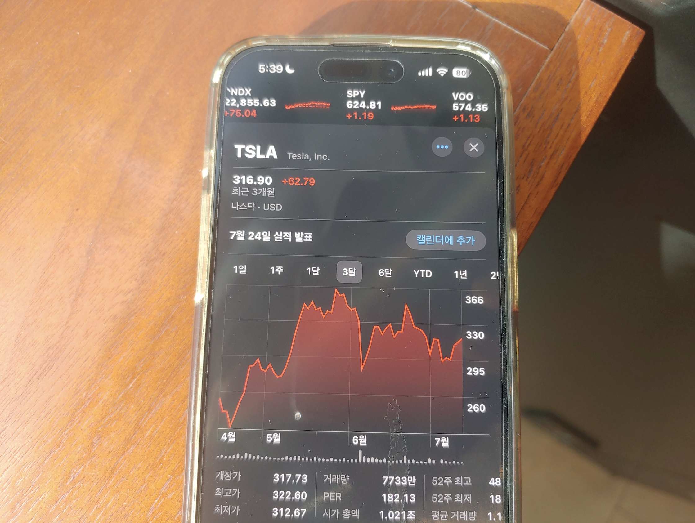 -1분기 실적발표 전후로 250.74달러, 7월 15일 현재 316.90달러...BUT 주가 변동폭 높았다