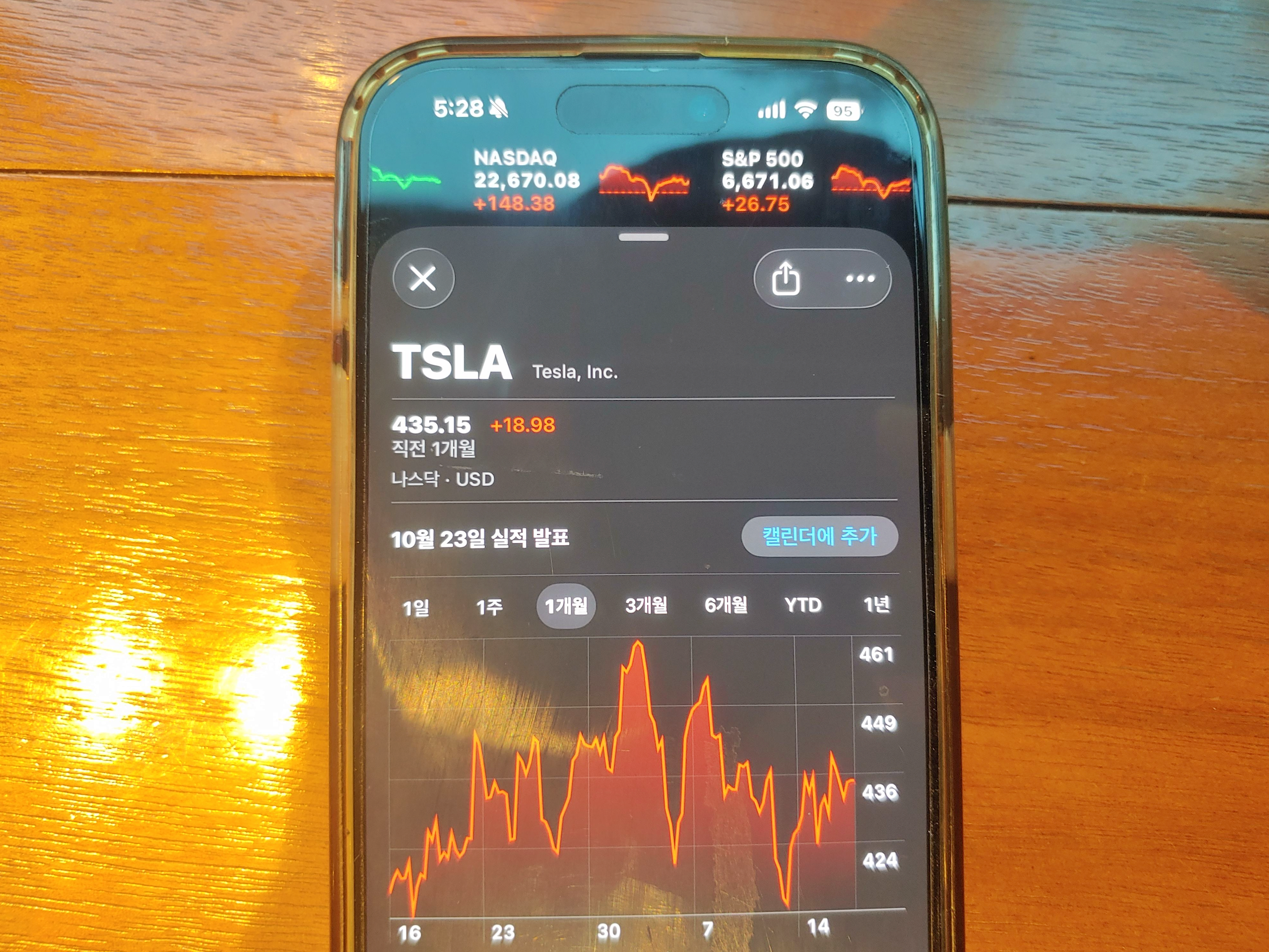 -지난 9월 12일 일론 머스크 자사주 10억 달러 매입으로 400달러대 돌파, 지금도 유지중