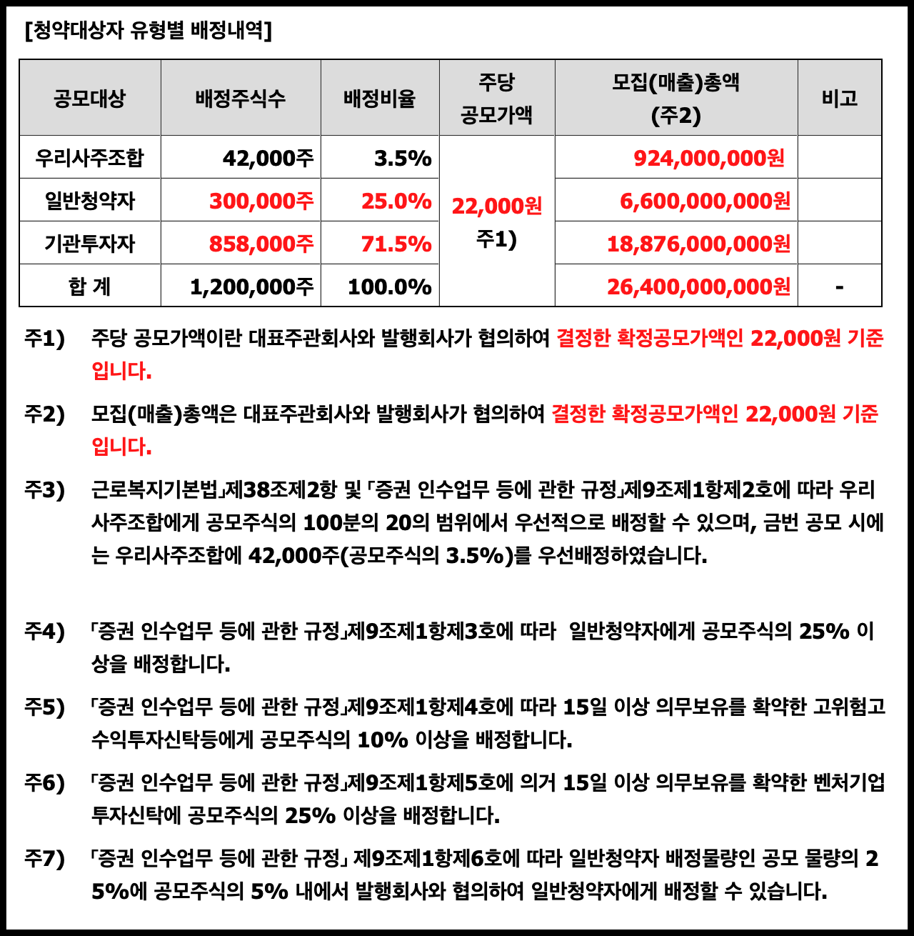 청약증거금 : 220,000원(최소 청약 수량 : 20주, 청약증거금률 : 50%)