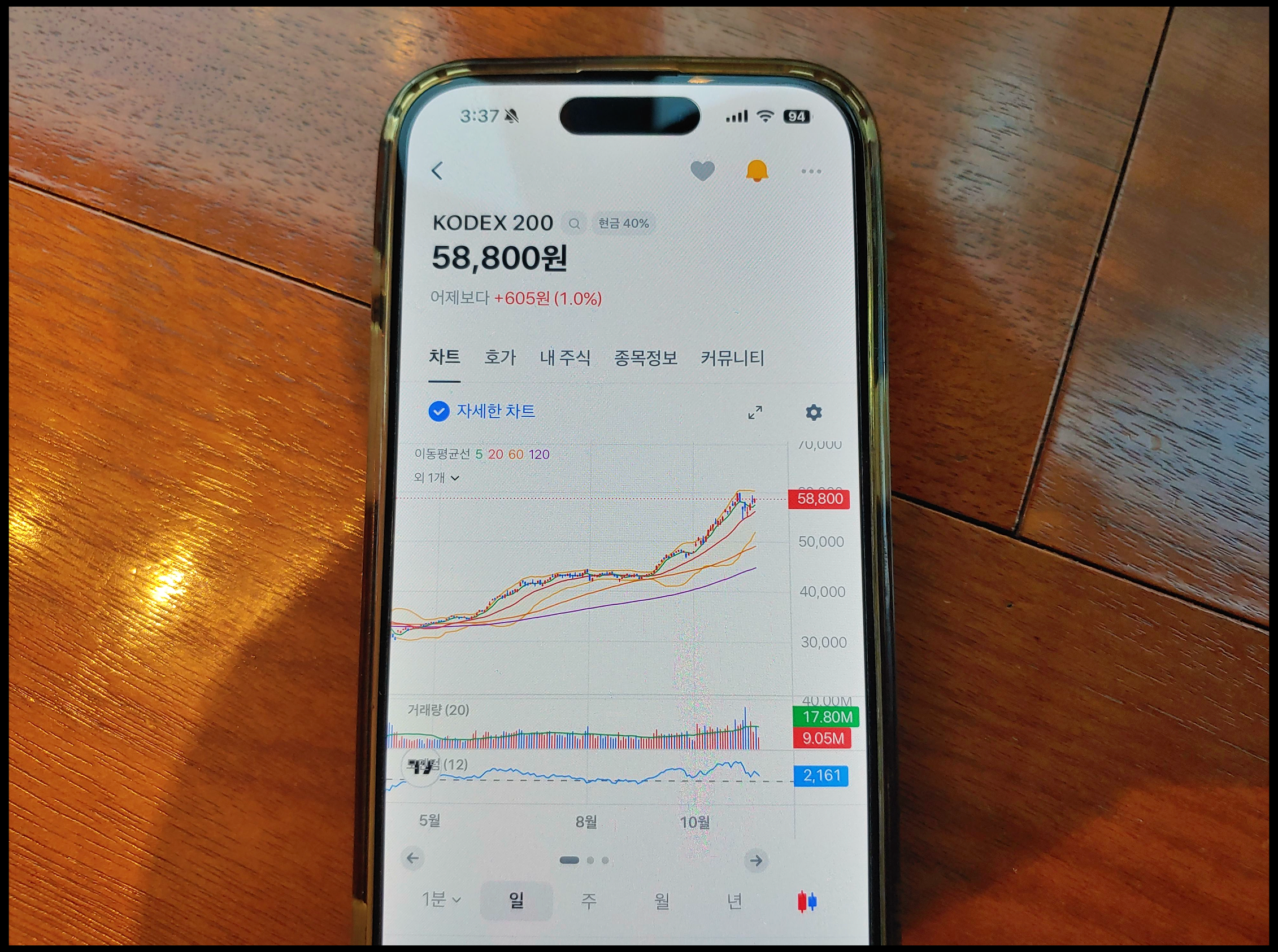 [사진 = 현재 한국에서 주목받는 국내 주식 ETF 중에 한 종목이 있다면 KODEX 200 입니다. 코스피 상장 및 시가총액 등이 높은 200개 기업을 지수로 삼으면서, 코스피 200 추종하는 ETF 입니다. 구성 종목에 삼성전자(25.5%) SK하이닉스(18.3%) 비중이 가장 많습니다. 해당 ETF가 지난 5월 28일에는 35,551원(종가)입니다. 11월 12일 오후 3시 30분 넘은 현재는 58,800원으로서 6개월 전에 비해 크게 올랐습니다. 여기서 5월 28일을 주목하는 이유가 있습니다. 이재명 대통령이 대선 후보 시절에 투자했던 코스피 200 지수 추종 ETF가 KODEX 200으로 추정됩니다. (C) 토스 앱]