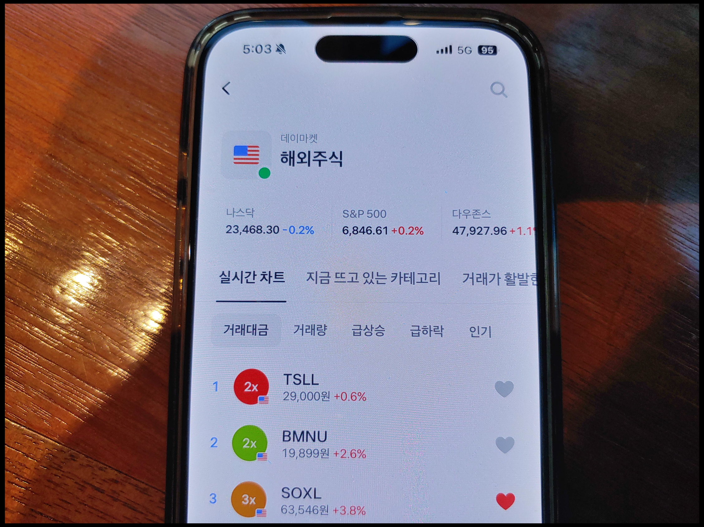 [사진 = 토스 해외주식 거래대금 1~3위 모두 레버리지 ETF 입니다. 그만큼 사람들이 레버리지 신경쓴다는 뜻입니다. (C) 토스 앱]