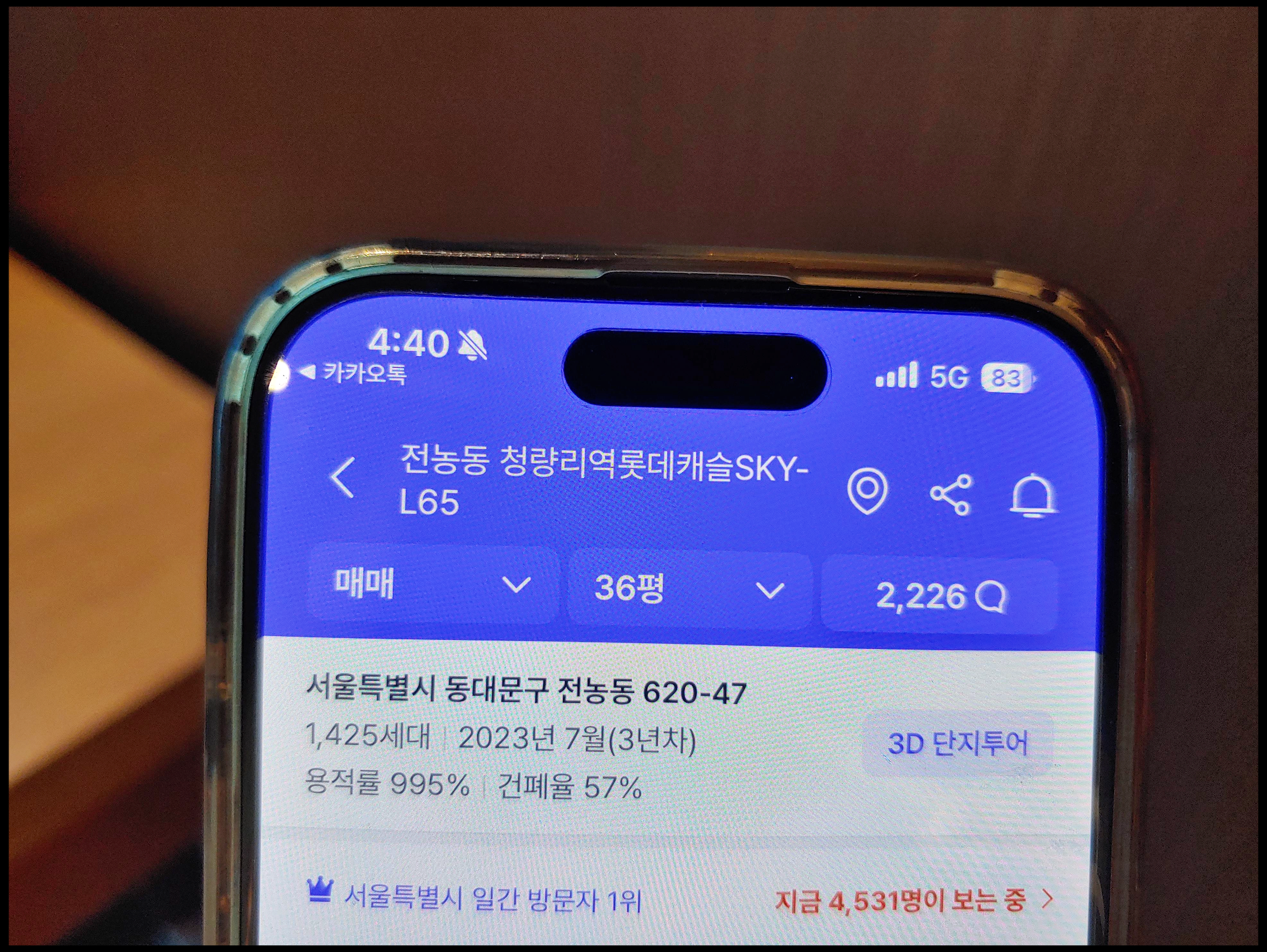 [사진 = 해당 아파트는 호갱노노 실시간 검색어 1위 기록중입니다. 서울시 일간 방문자 1위이며, 현재 서울에서 가장 많은 관심을 받는 아파트라고 보시면 됩니다. (C) 호갱노노 앱]