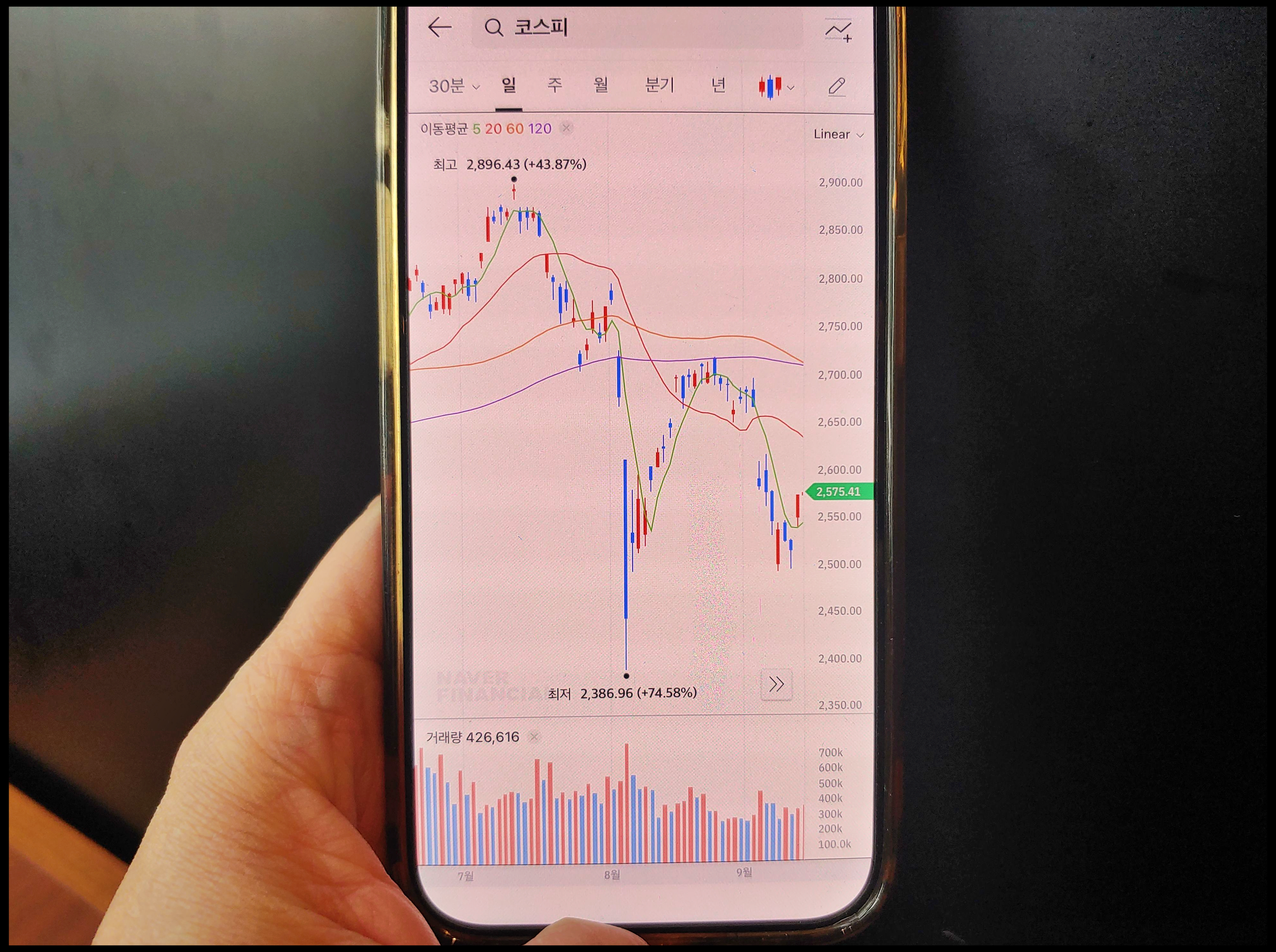 일본 금리 인상 국내 코스피 지수에 안좋은 영향을 줬던 시기가 있었습니다. 2024년 8월 5일 폭락했던 날이었습니다. 장중 최저치 2,386.96으로서 전날보다 10.81% 하락했으며, 종가는 2,441.55로 끝났습니다. 전날에 비해 8.77% 하락했습니다. 7월 한때는 2,896.43까지 올랐는데 어느 순간에 2,300선까지 내려갔습니다. 그 이후 다시 반등했으나 이때의 쇼크가 컸습니다. 어떻게 보면 저가 매수의 기회였을 수도 있었으나 그 당시에는 공포감이 컸습니다. 2025년 12월 12일 코스피는 4,100선 기록했습니다. / 사진 (C) 네이버 앱