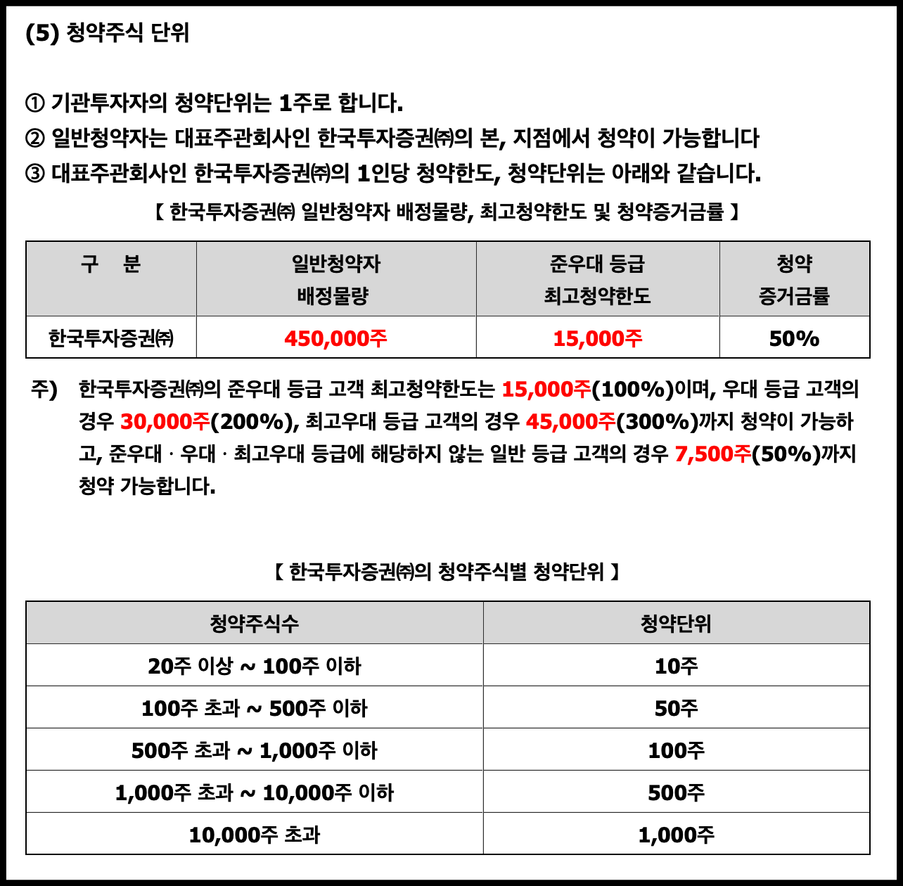 일반 청약자 주식 수 : 450,000주