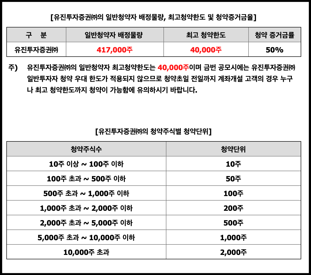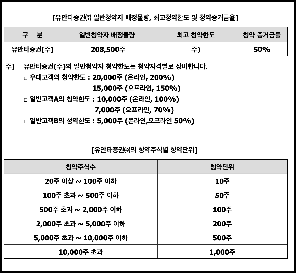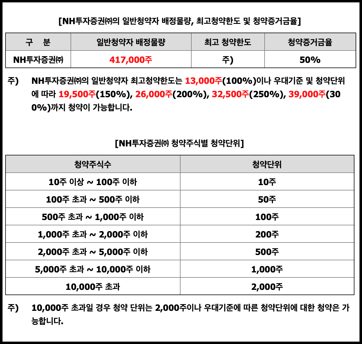 일반 청약자 주식 수 : 417,000주(NH, 유진) 208,500주(유안타)