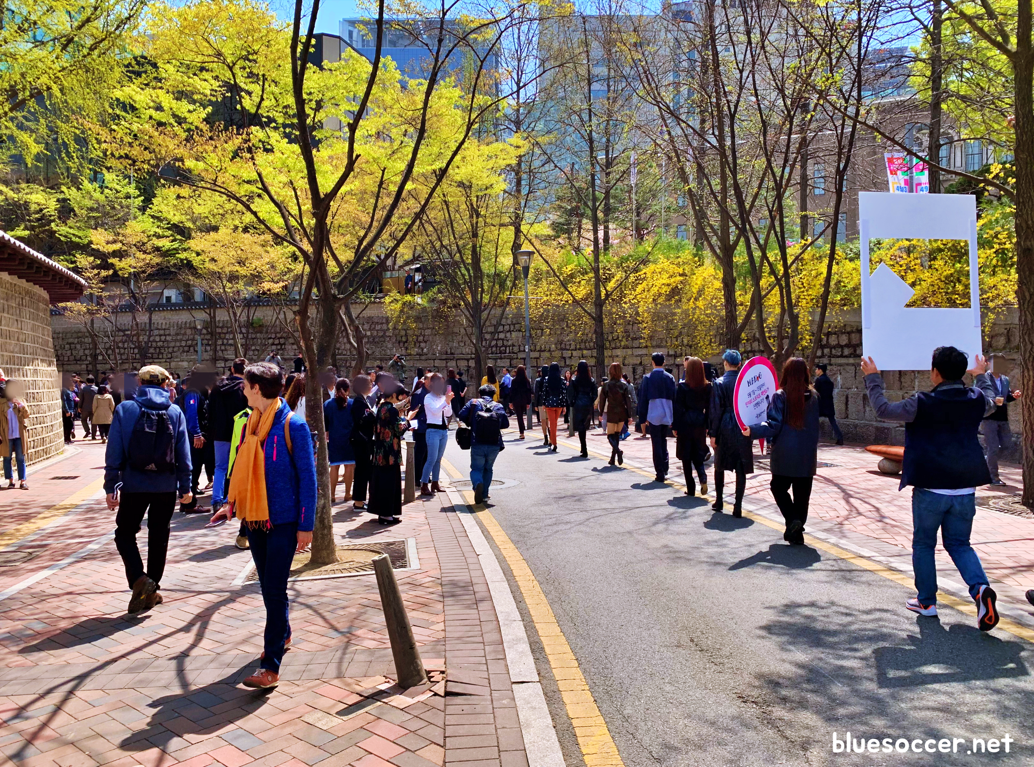 이번에는 모델들이 덕수궁 돌담길로 이동했습니다. 점심 시간대라서 그런지 주변에 직장인분들이 많았습니다. 근처에서 점심 식사를 먹고 회사로 돌아가거나 아니면 점심 식사하러 이동하는 사람 입장에서는 모델들이 걸어가는 모습을 보며 아마도 '무슨 행사하는구나'라고 생각하지 않았나 싶습니다.