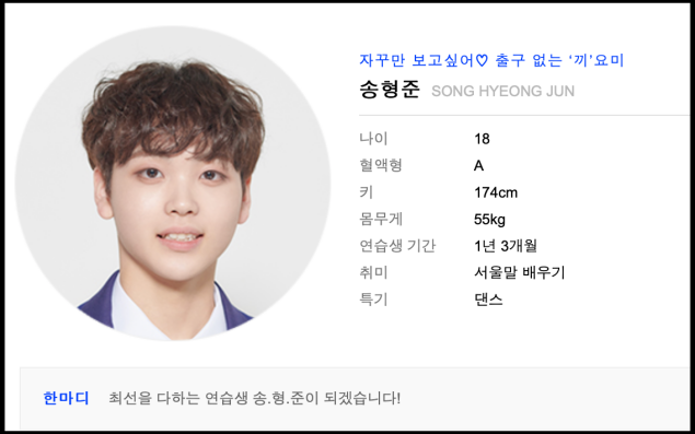 프로듀스 송형준 나이, 1차 3위 기세 이어갈까?