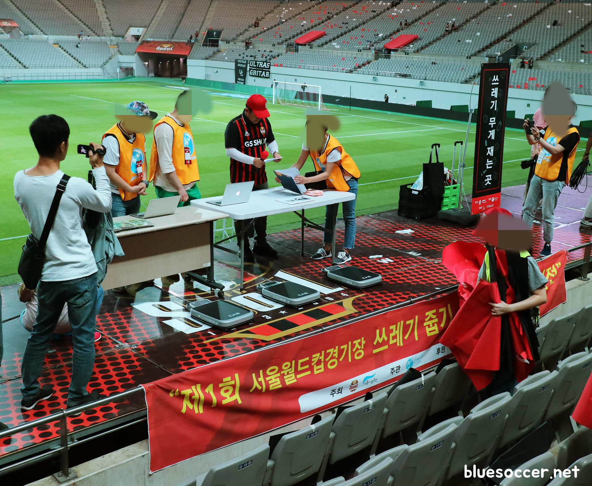 쓰레기통을 보면 쓰레기를 쓰레기통에 버린 사람이 많다는 것을 알 수 있습니다.(아마도 쓰레기줍기 스포츠 대회에 참여한 분들은 아닌 듯) 하지만 일부 관중들이 관중석에 쓰레기를 버린 것이 아쉬웠습니다.