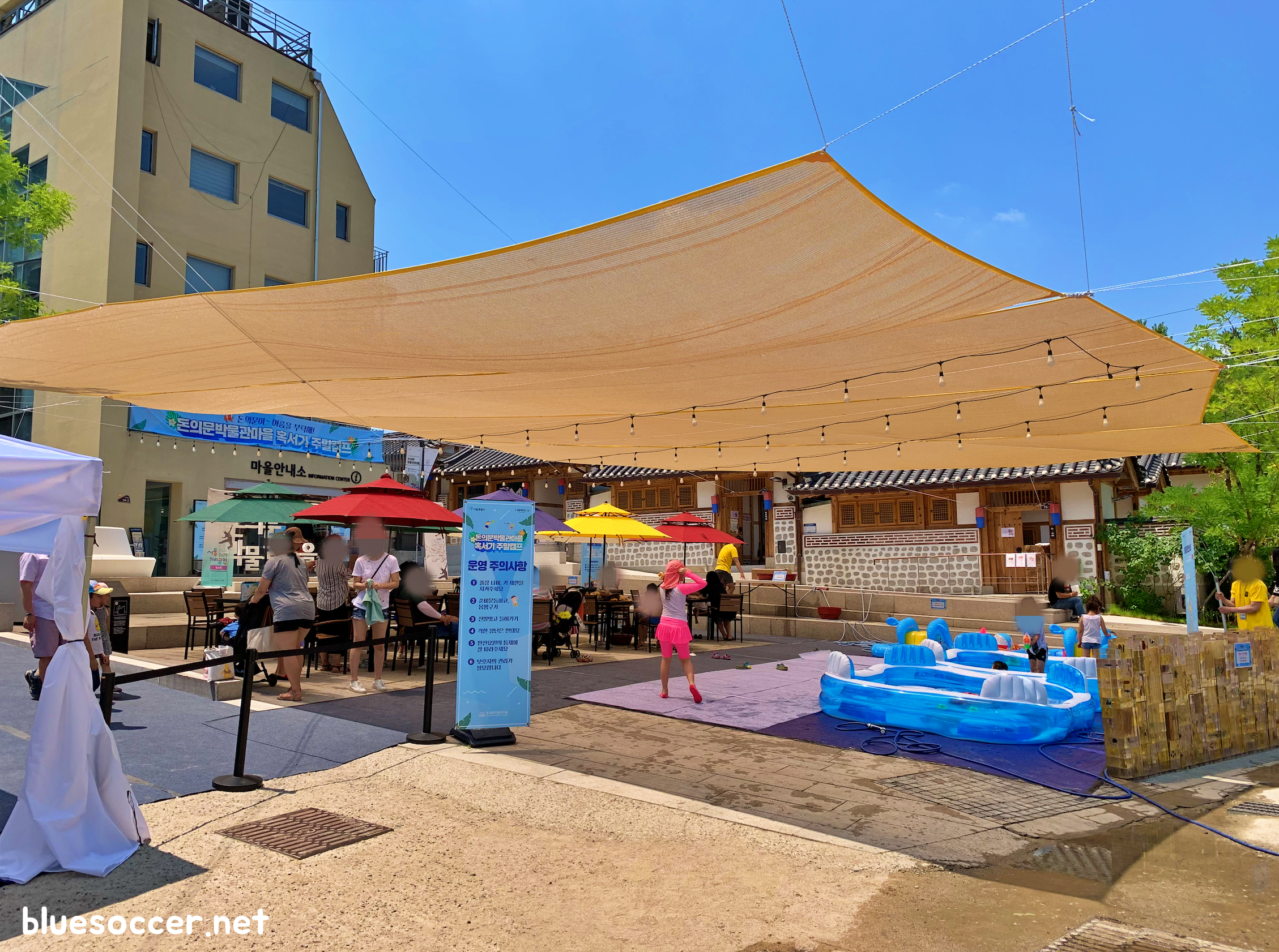 돈의문박물관마을의 마을마당에는 풀장이 큼지막하게 펼쳐졌습니다. 이곳에서 어린이들이 물놀이 즐기는 모습을 봤습니다.