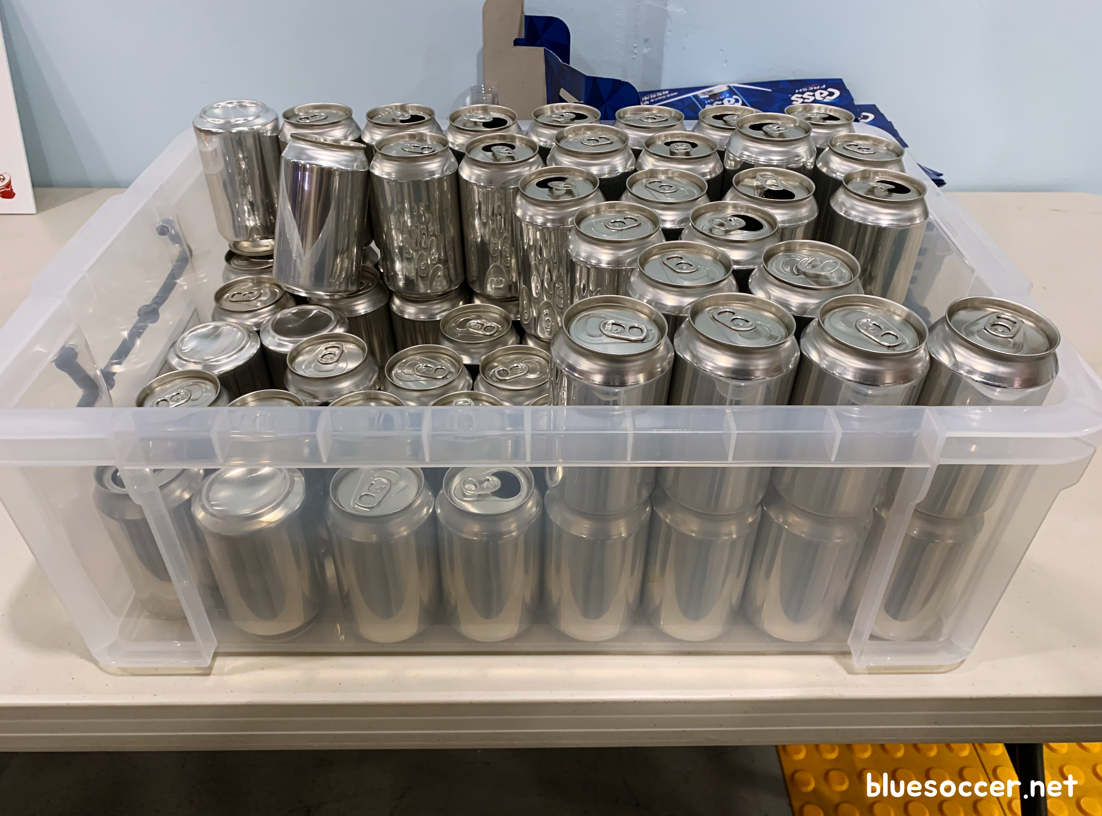 고척스카이돔 캔크러시챌린지 캠페인에 쓰일 캔은 사전에 준비됐습니다.(음료는 다 비워진 상태) 그 이유를 짐작해보니 아마도 야구장 캔 반입 금지 때문에 그런 것 같습니다. 캔을 가지고 야구장에 들어갈 수 없으니 말입니다.