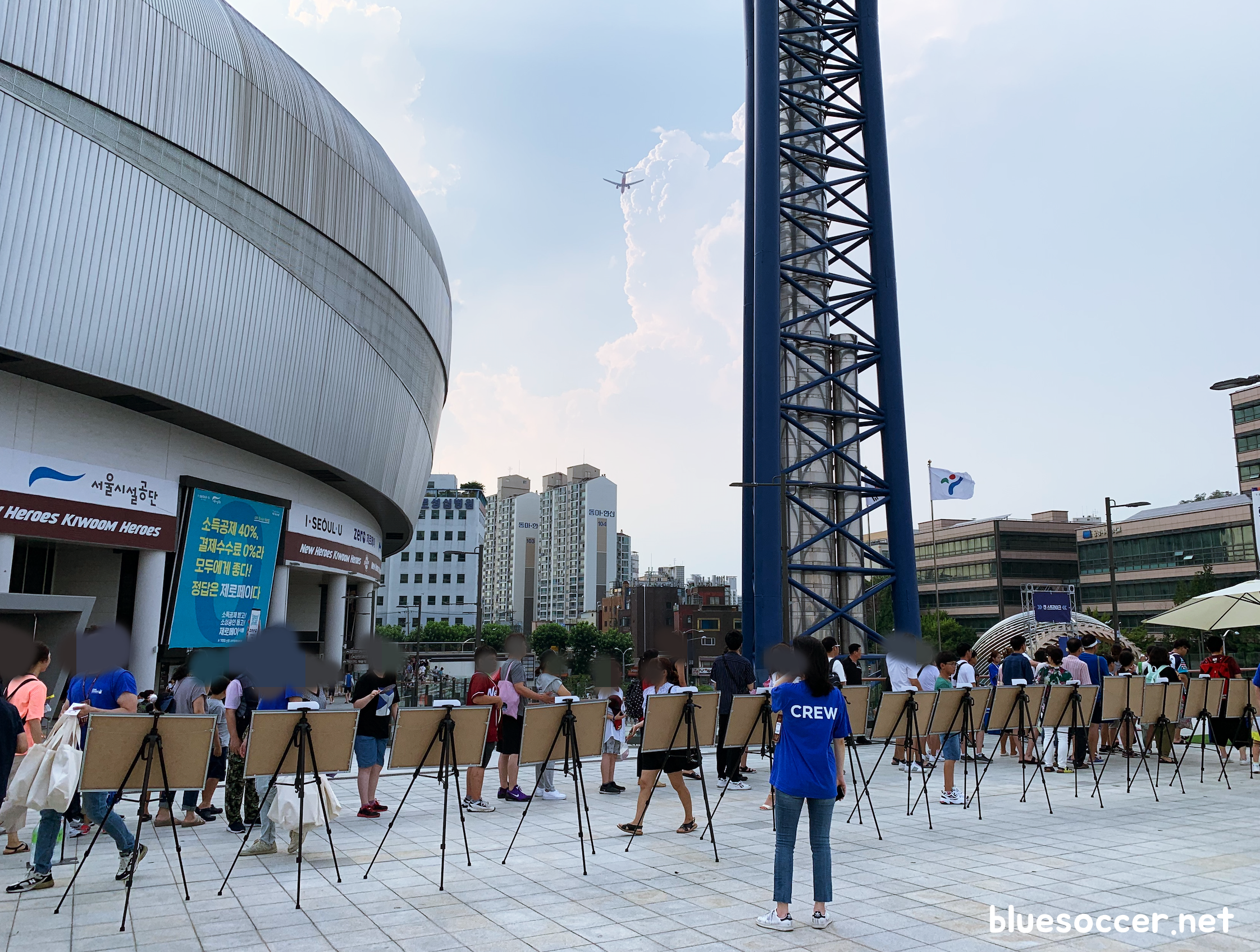 제가 이곳에 있을 때 비행기가 지나다니는 모습을 볼 수 있었습니다. 김포공항을 이륙하는 비행기인지 아니면 착륙하는 비행기인지 알 수 없으나 어쩌면 기내에서 고척스카이돔이 보이지 않을까 싶은 생각이 들더군요. 고척스카이돔이 다른 건물에 비해서 넓을 뿐만 아니라 모양이 독특하게 생겼습니다.