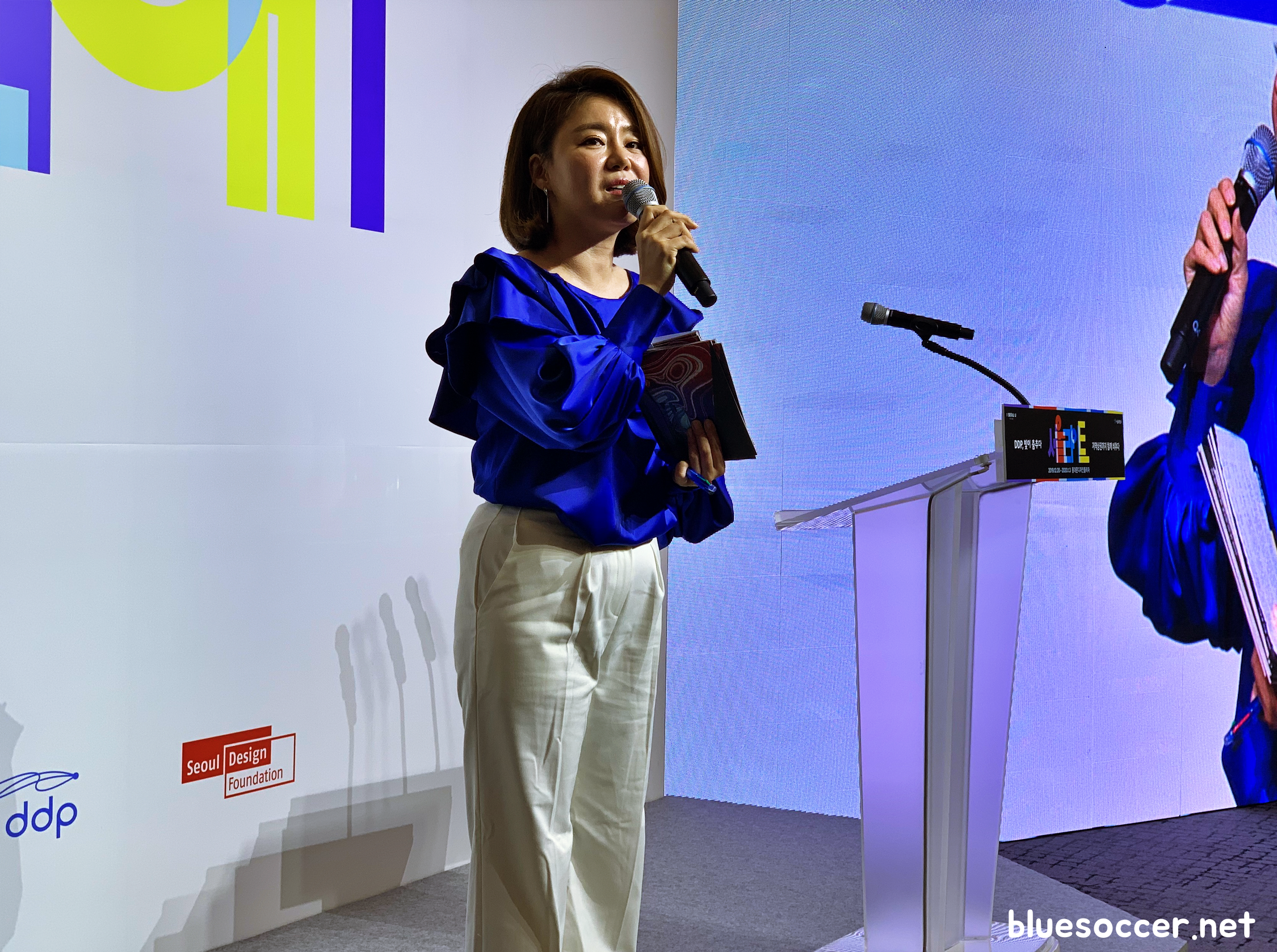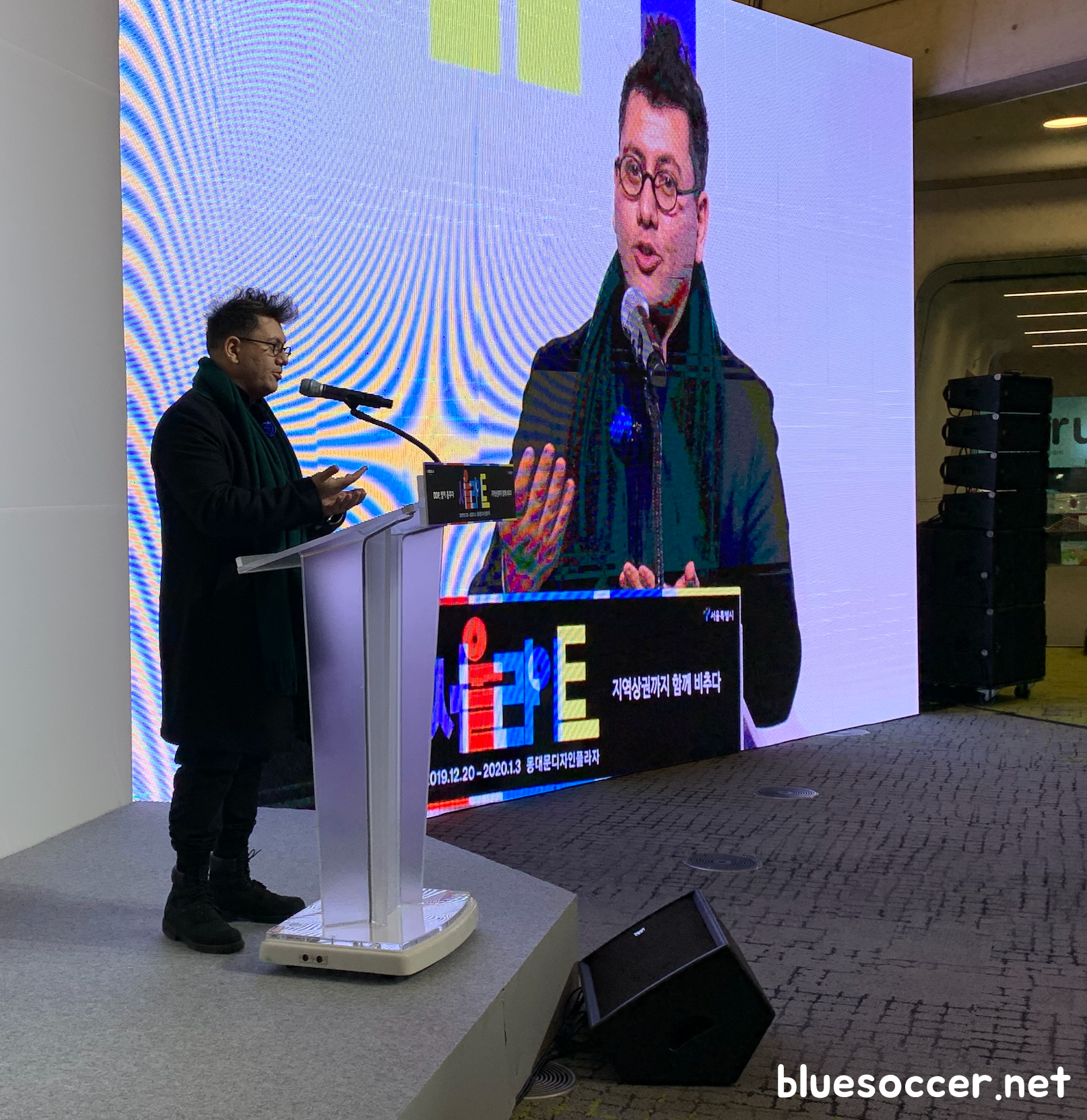 민세희 총감독은 "많은 분들이 와주셔서 감사드리고요. 디자인재단, 서울시와 같이 협력해서 이렇게 큰 프로젝트를 같이 진행했는데 너무 영광스럽고 좋은 프로젝트를 진행해서 감사드립니다."고 말한 뒤 DDP의 역사적 의미가 있다면서 "그 의미를 우리가 함께 다시 돌아보면서 과연 이 동네에는 어떤 것들이 있을까, 어떤 사람들이 있고, 어떤 사람이 같이 살아가고 있을까 그런 내용을 담고요. 데이터로 작업하는 사람 입장에서는 우리가 공공 환경에서의 공공 스크린을 이용할 때 무엇을 시민들에게 보여줘야지 그래도 시민들에게 가장 많이 연결되고 함께 호흡할 수 있는 콘텐츠를 만들 수 있을까 고민했습니다"고 전했습니다.