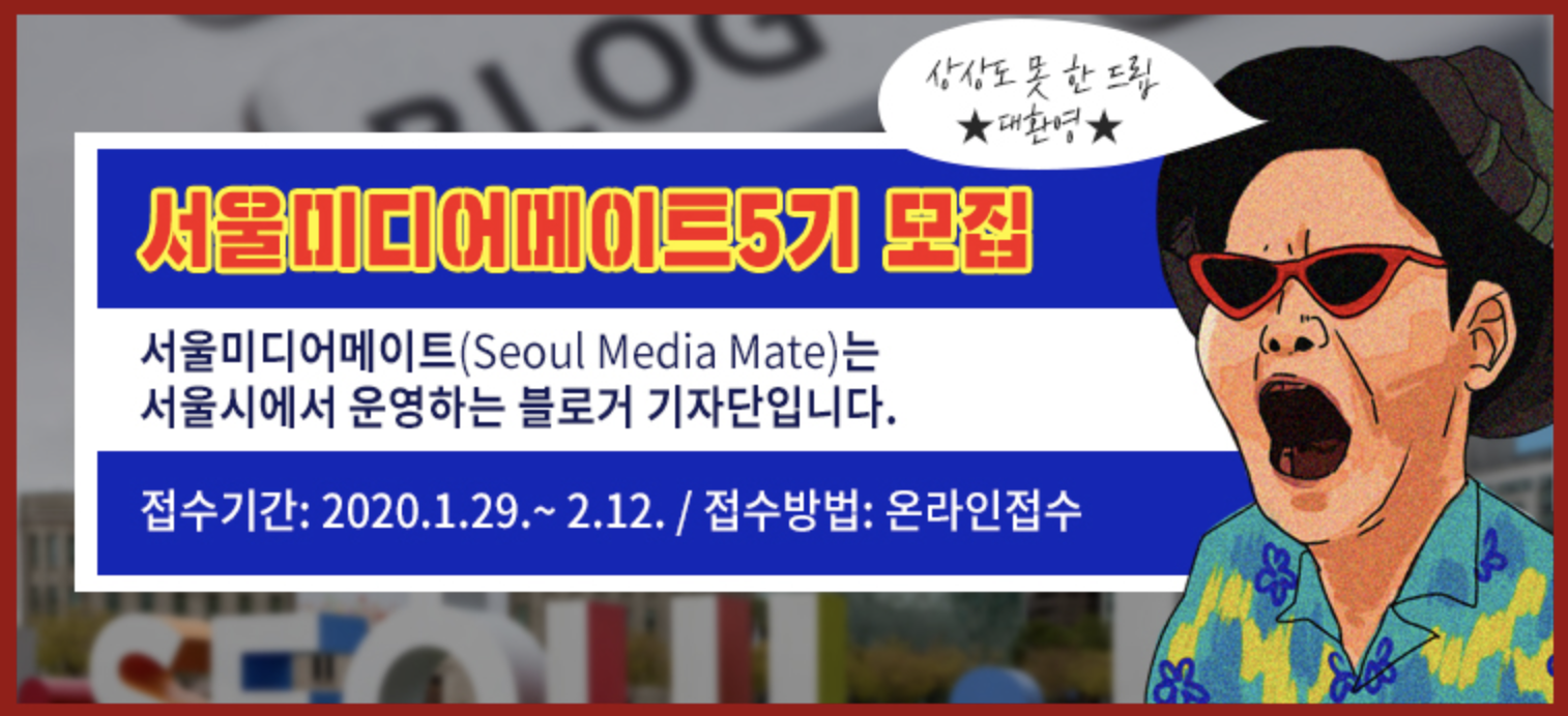 서울미디어메이트 5기서울모든일상을리뷰할블로거 공.개.모.집 상상도 못 한 드립 대환영!!★웰...