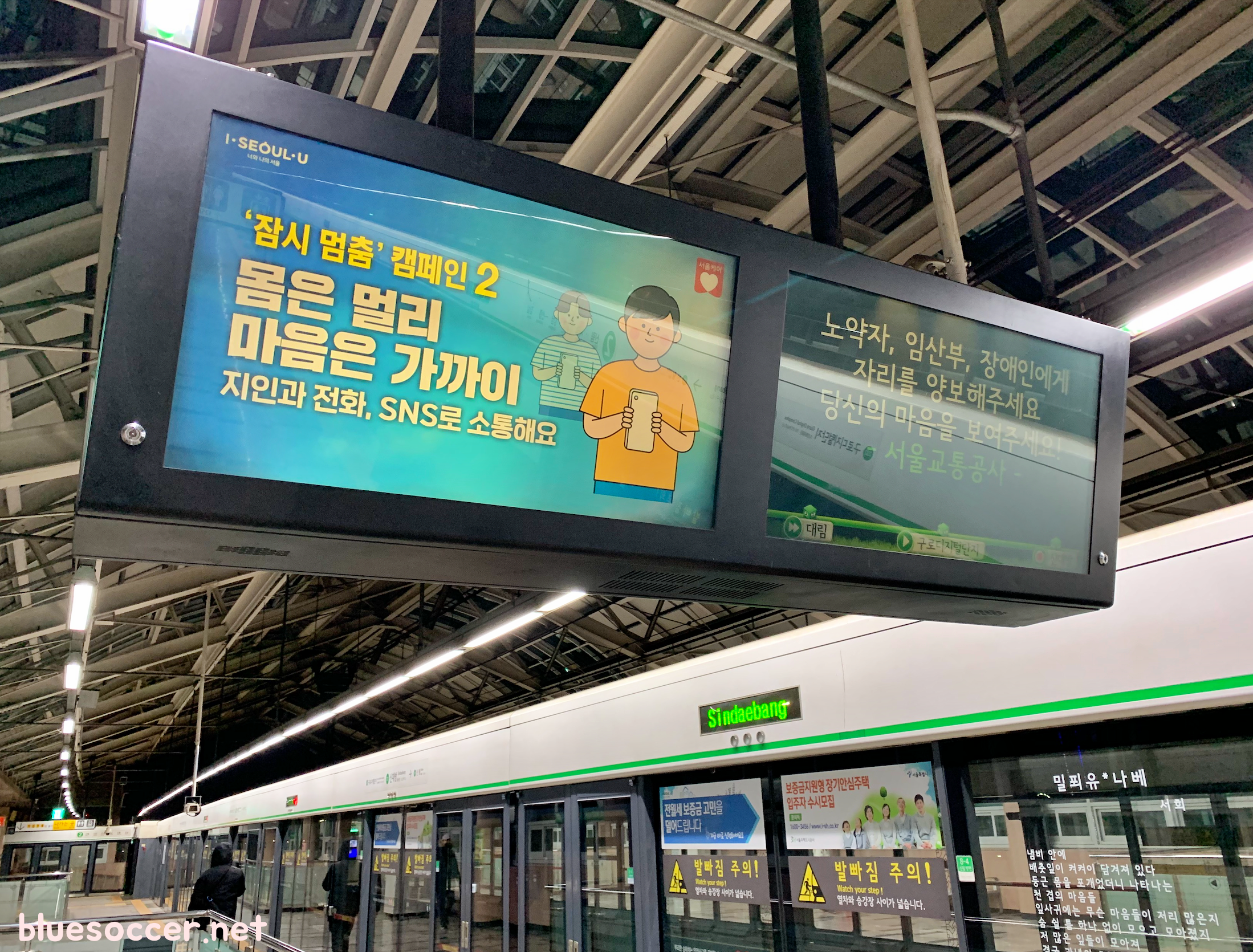 지하철에서 안내되는 잠시 멈춤 캠페인을 통해 생활 수칙이 안내되어 있습니다.