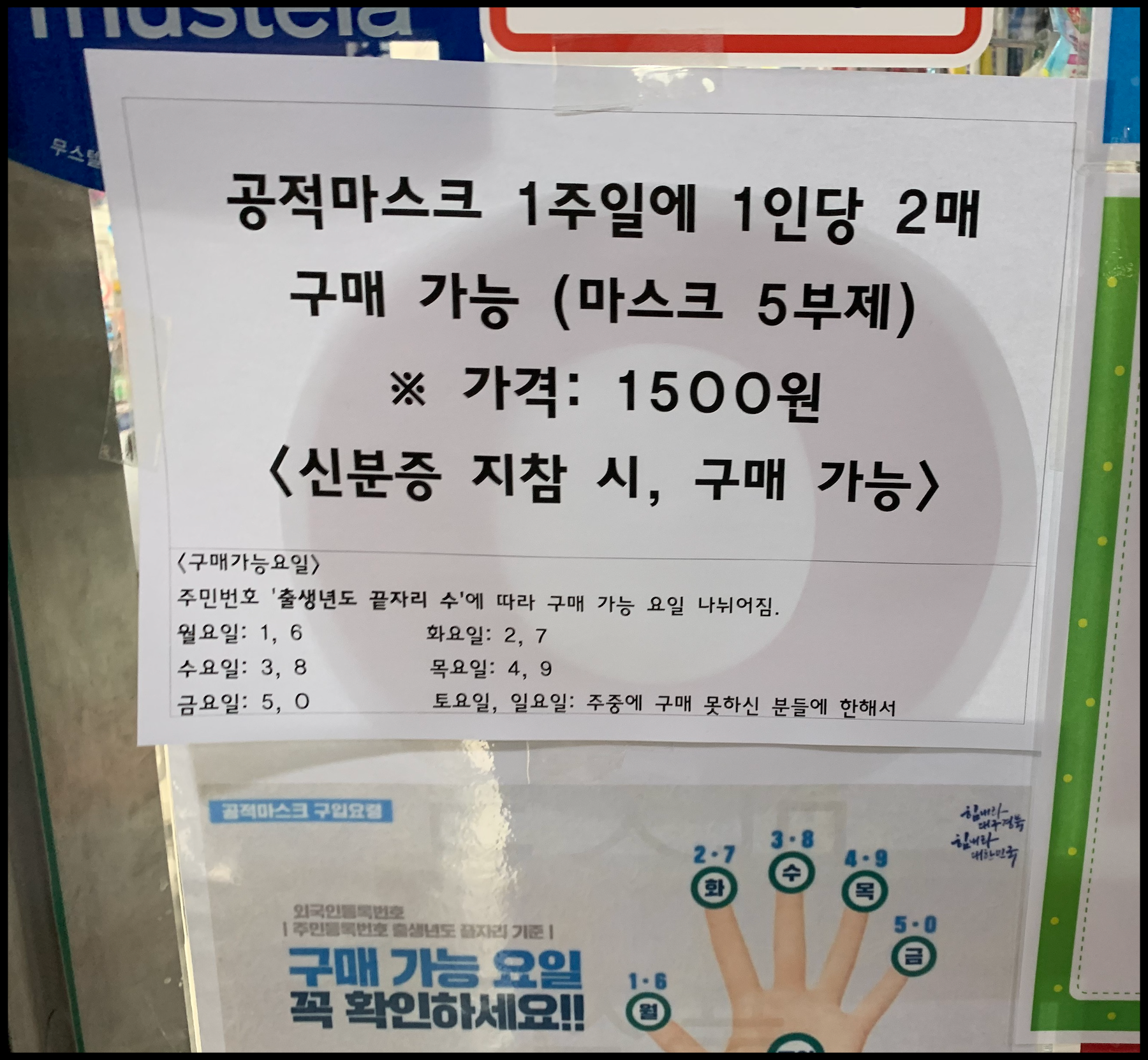 -3월 9일부터 시작된 마스크 5부제, 공적마스크 1주일에 1인 2매 구입 가능