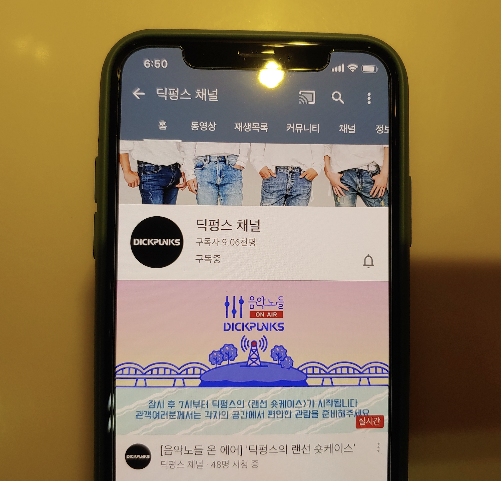 저는 모바일로 블루투스 이어폰을 연결해서 딕펑스 출연하는 음악노들 온 에어 지켜봤습니다. 평소 유튜브 및 V LIVE 등을 통해서 아이돌 영상을 많이 시청했는데 이번에는 밴드의 공연 모습을 유튜브 생중계로 지켜보는 차이점이 있었습니다. 그동안 딕펑스 공연하는 모습은 주로 TV를 통해서 봤는데 유튜브 생중계로 보게 된 것은 이번이 처음입니다. 딕펑스의 음악적 매력을 오랫동안 접할 수 있었습니다.