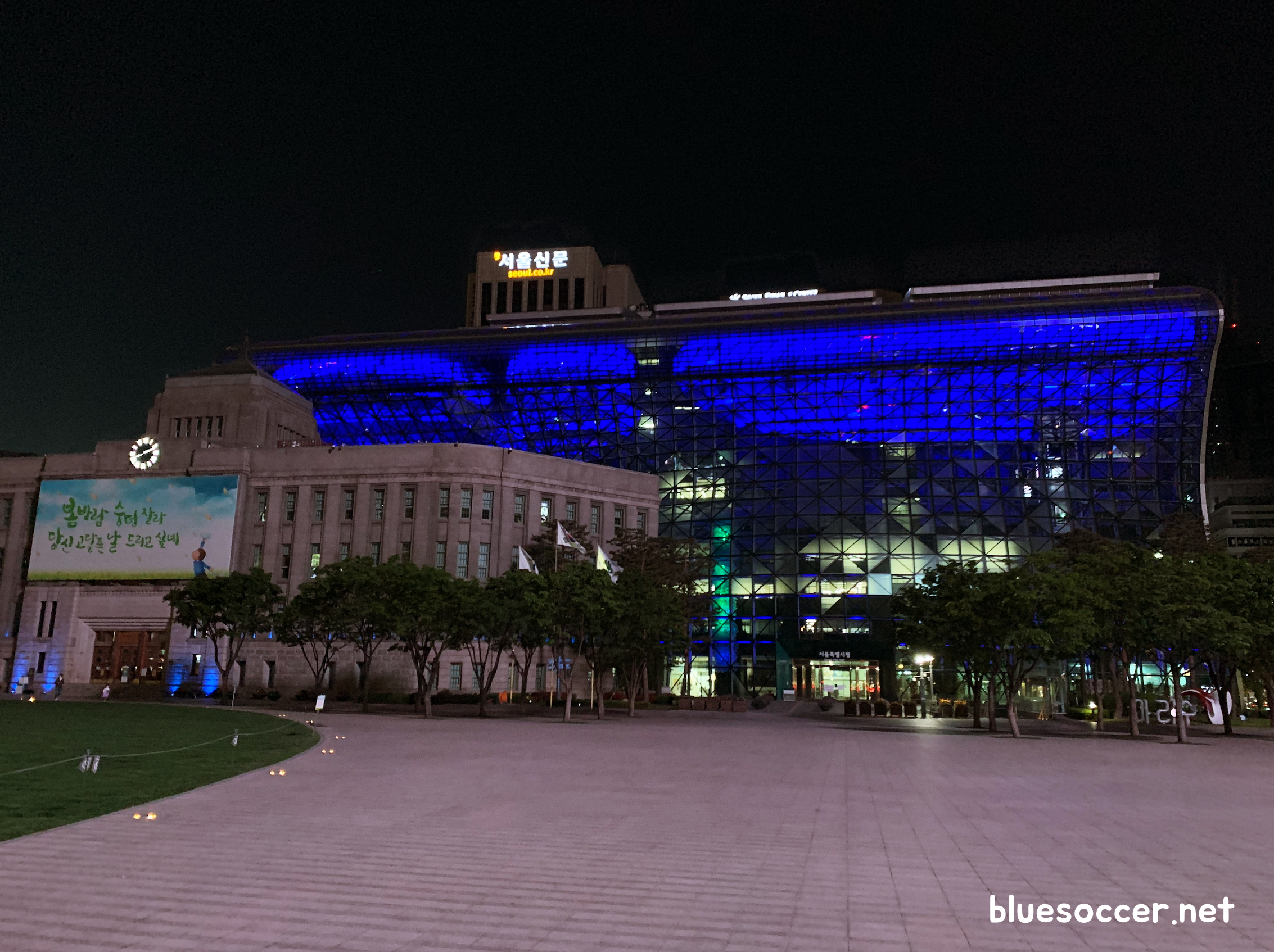 그럼에도 서울월드컵경기장이 블루라이트 캠페인 참여하는 모습을 보며 사람들에게 즐거움을 안겨주는 것 같습니다. 그동안 서울월드컵경기장에서 펼쳐지는 축구 경기를 보면서 환호했던 사람이 많았을텐데(한편으로는 한국 대표팀이 고전할 때 답답함을 느꼈던 경우도 있겠지만) 경기장 지붕에 푸른빛이 들어온 모습을 통해 사람들을 사로잡는 매력이 넘쳐납니다. 2002년 한일 월드컵 개막식이자 4강 한국 대 독일 맞대결이 펼쳐진 경기장에서 평소와 다른 모습을 바라볼 수 있으니 말입니다. 블루라이트 캠페인이 전개되는 몇몇 서울 명소들을 둘러보니 서울의 새로운 매력을 접할 수 있었습니다.