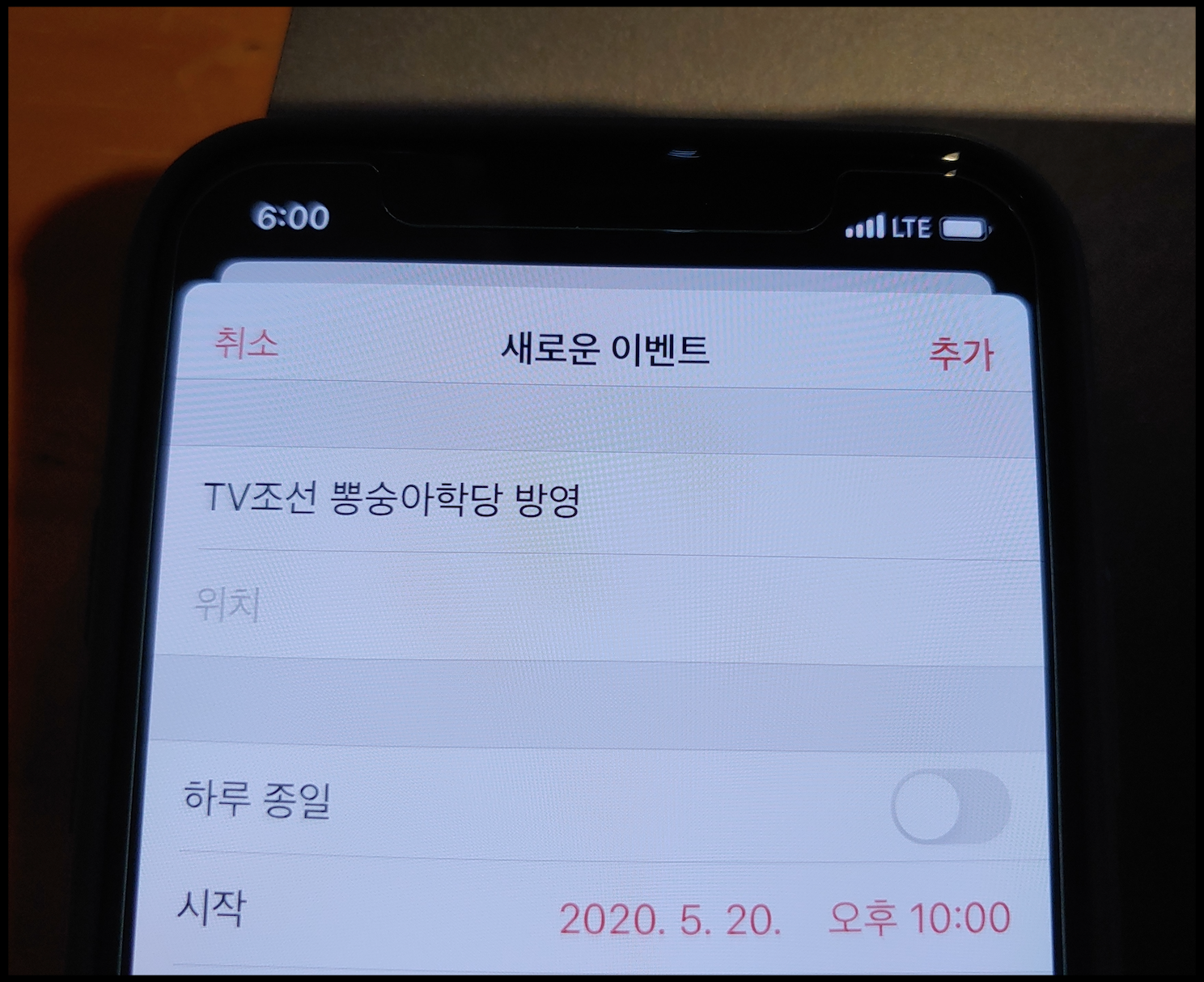 [사진 = 2020년 5월 20일 TV조선 뽕숭아학당 2회 방영 예정입니다. 오후 10시부터 방영됩니다. 사진은 저의 스마트폰 달력이며 2020년 5월 20일을 가리킵니다. (C) 나이스블루]