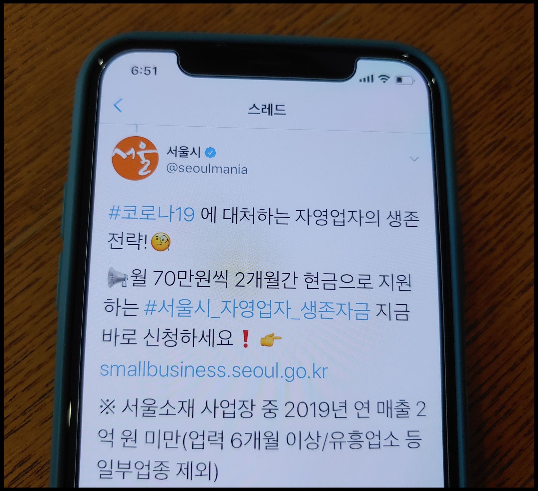 [사진 = 서울시 공식 트위터에서는 5월 25일 서울시 자영업자 생존자금 안내하는 게시물을 올렸습니다. SNS에서 해당 서울시 정책이 안내되는 모습을 볼 수 있습니다. (C) 서울시 공식 트위터]