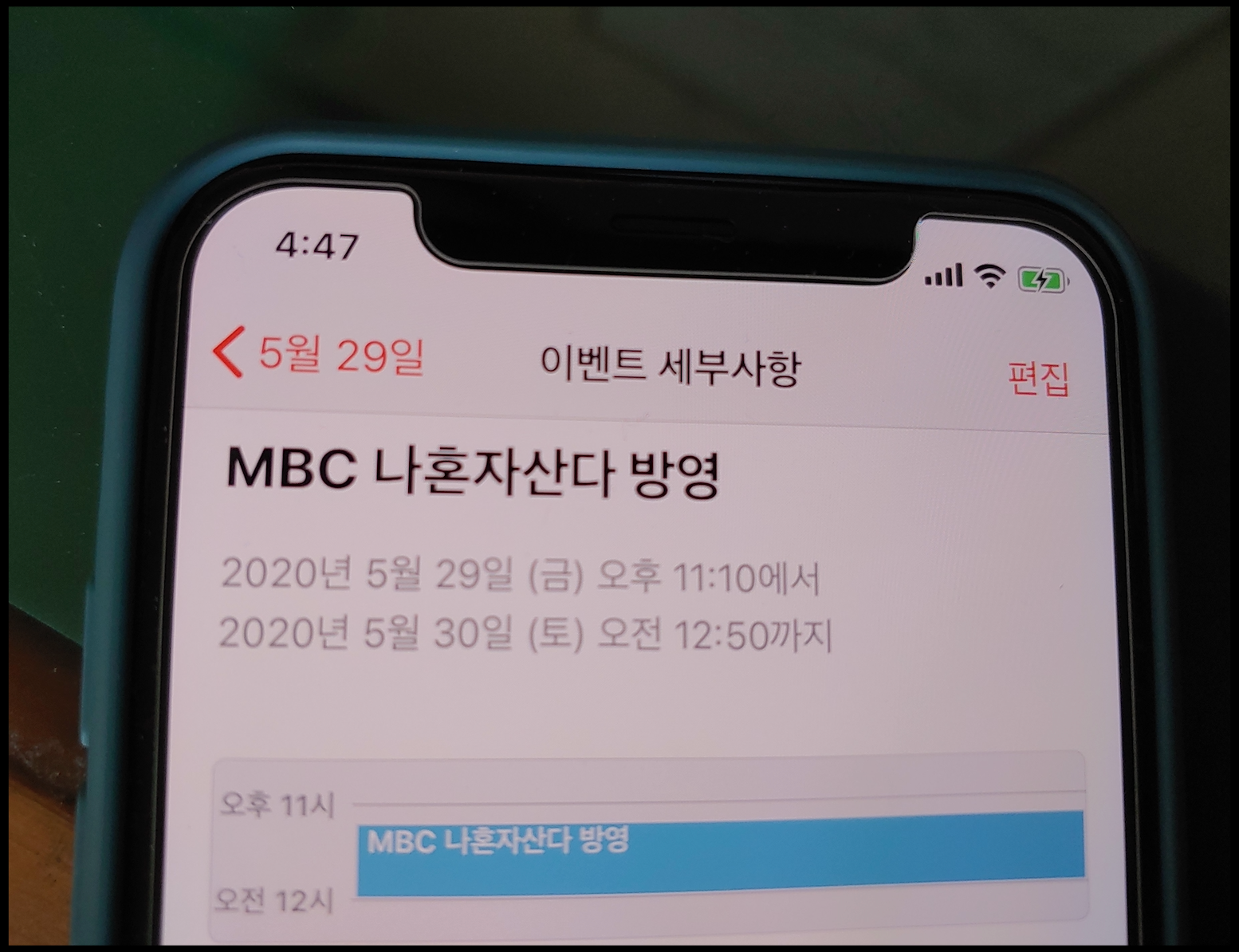[사진 = 2020년 5월 29일 MBC 나혼자산다 방영됩니다. 사진은 저의 스마트폰 달력이며 2020년 5월 29일을 가리킵니다. (C) 나이스블루]