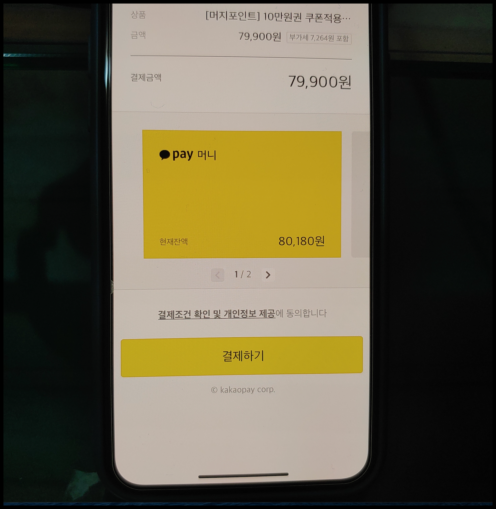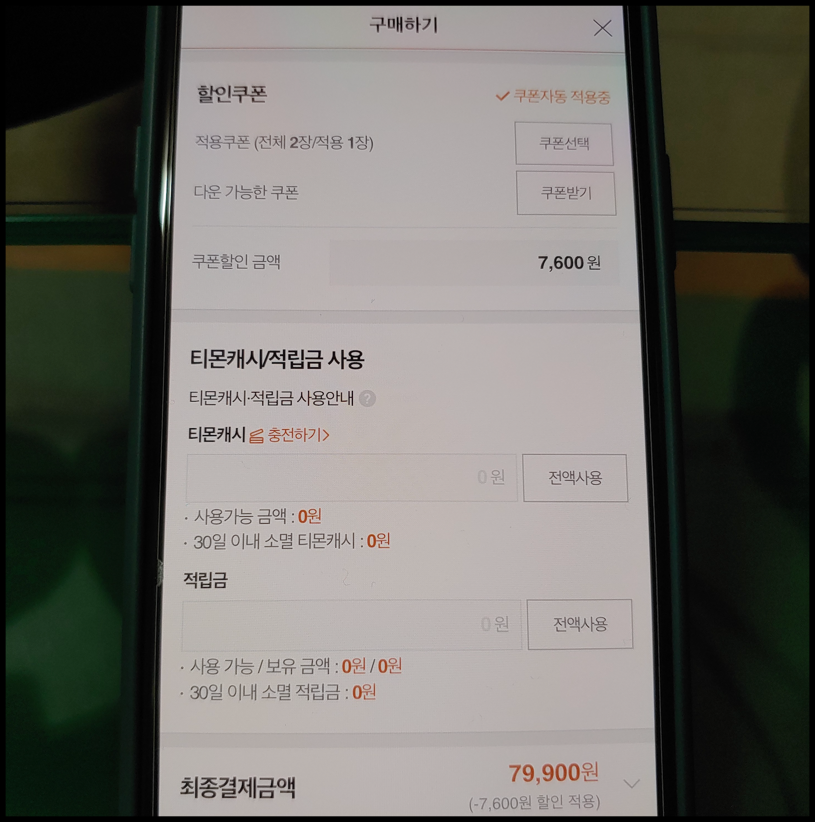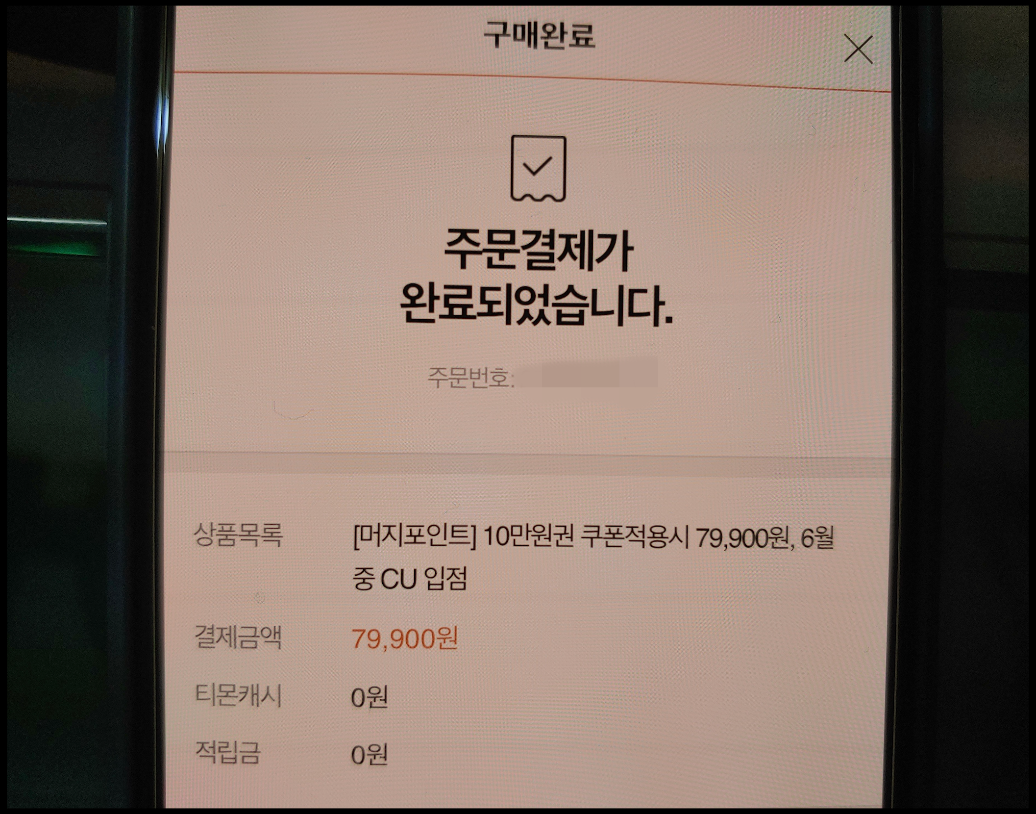 저는 카카오페이로 결제했습니다. 티몬이 좋은 점 중에 하나는 카카오페이 결제가 가능하다는 점입니다. 이렇게 79,900원에 구입하게 되었네요.