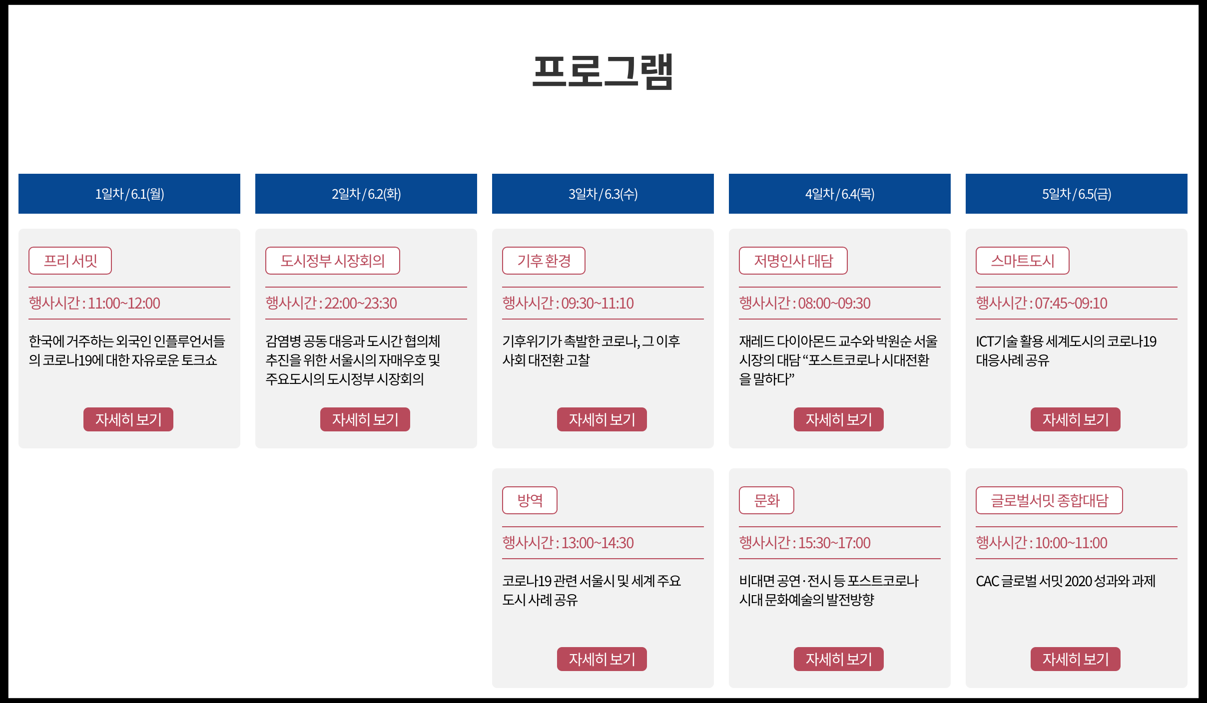 서울시 공식 블로그에서는 CAC 글로벌 서밋 2020에 대하여 자세히 안내됐습니다. 행사가 어떻게 진행되는지 파악할 수 있습니다.