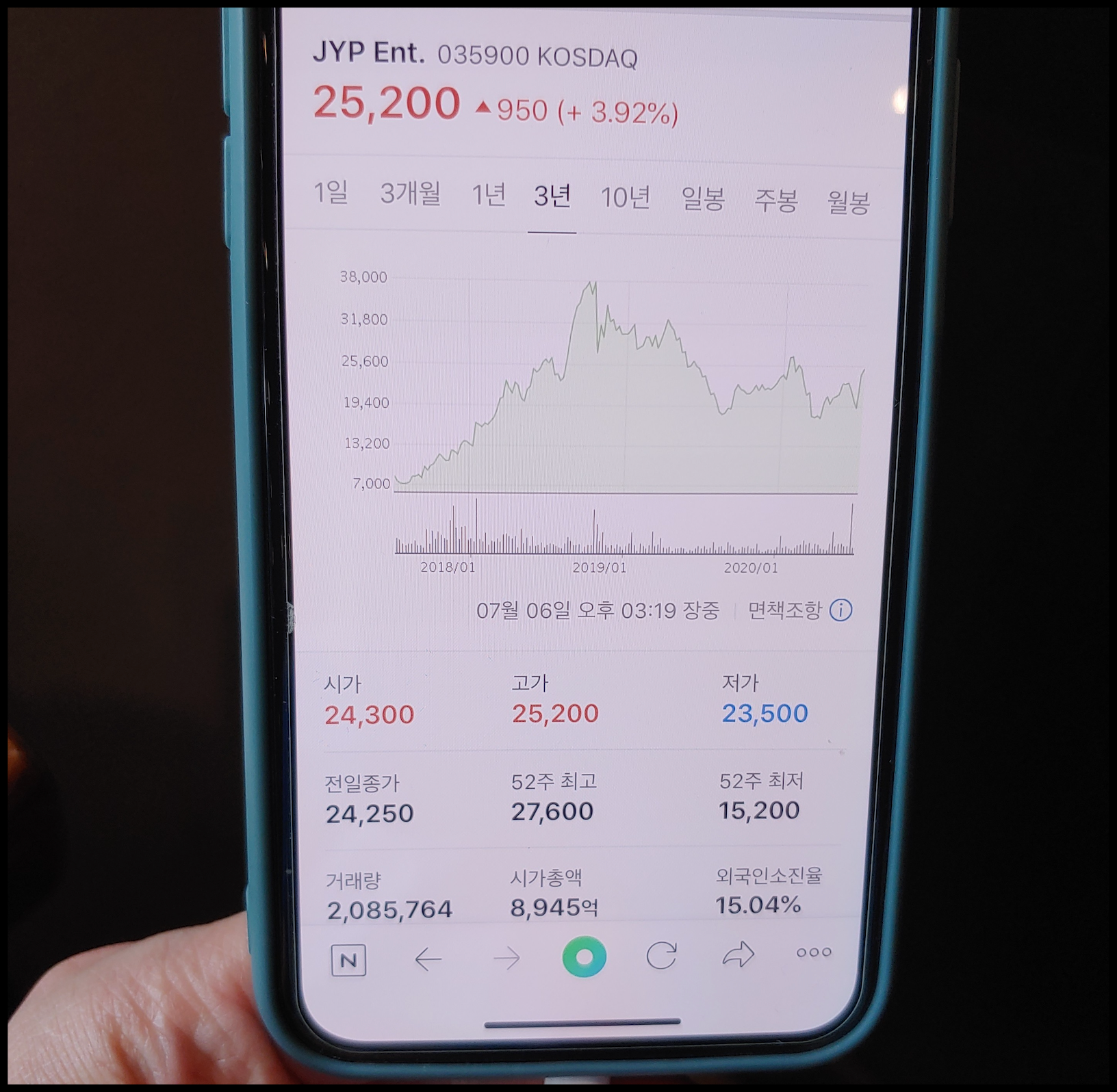 [사진 = JYP 주가 지난 3개월 동안의 흐름을 살펴보면 최근이 가장 높다는 것을 알 수 있습니다. 7월 6일에 25,200원 기록했습니다.(오후 3:19 기준) 니쥬가 일본에서 화제성 높다는 것이 한국에 알려지면서 주가 2만원 회복하더니 이제는 2만 5천원까지 넘었습니다. 향후 JYP 주가 전망 니쥬 인기 좌우할 가능성이 있습니다. 니쥬 데뷔 오는 11월 예정이기 때문에 향후 앨범 판매량이 어떨지 궁금합니다. 만약 니쥬 오리콘차트 1위 소식이 한국에 전해지거나 또는 앨범 판매량이 꽤 높을 경우 JYP 주가 상승 가능성이 있습니다. 현재 일본 내에서 유료 관중 동원하는 공연 일정 잡는 것이 원활하지 않다는 점에서 니쥬 앨범 판매량 어쩌면 JYP 엔터테인먼트 주가 영향을 끼칠 가능성이 있을지 모를 일입니다. (C) 네이버 앱]