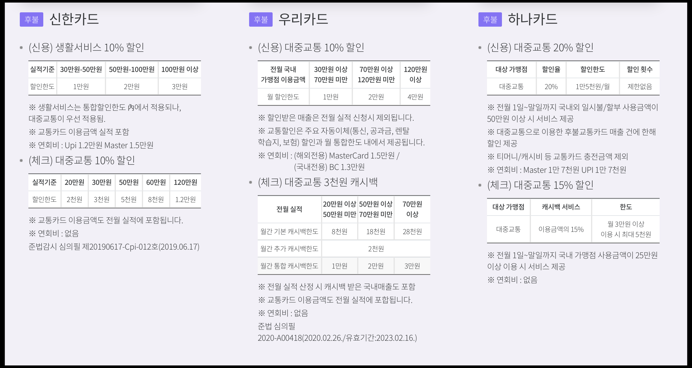 -광역알뜰교통카드 신한카드, 우리카드, 하나카드 혜택 차이점 탐구