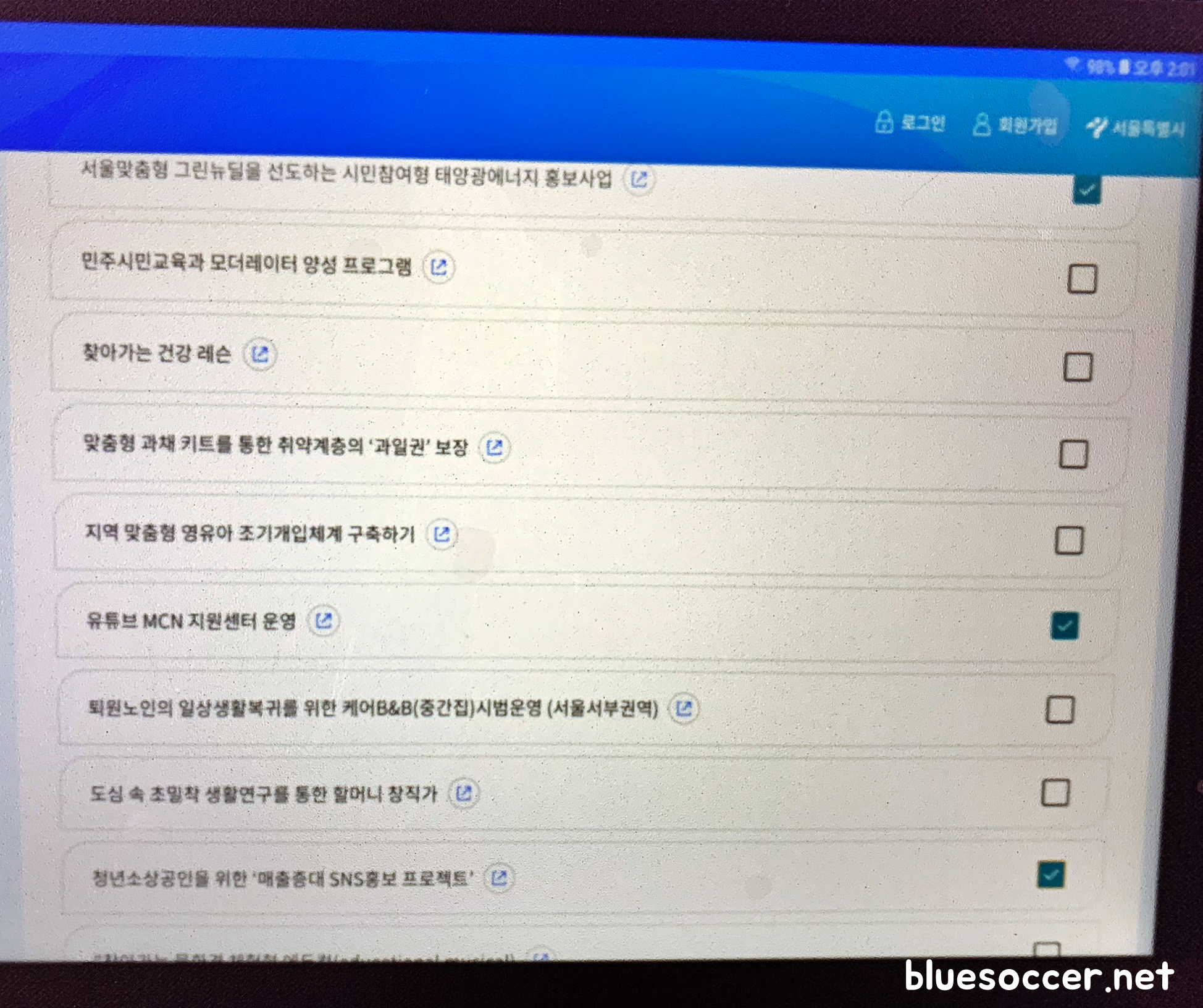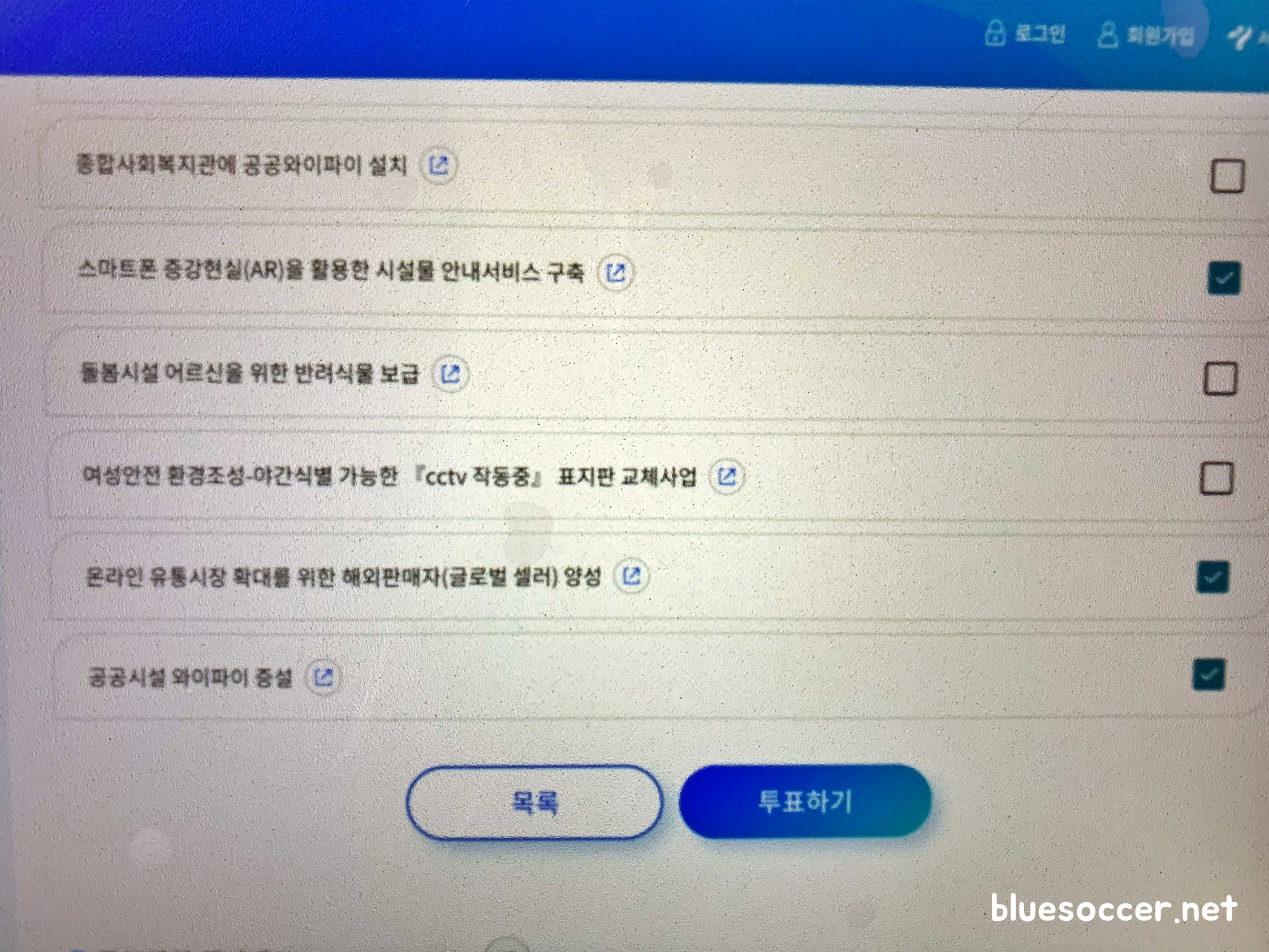 저도 투표에 참여했습니다. 태블릿PC 디스플레이에 표출된 엠보팅 홈페이지를 통해서 참여하게 됐습니다. 9개 분야 75개 사업 중에 7개 선정할 수 있는 광역제안형, 22개 사업 중에서 선호하는 3개 사업 선정할 수 있는 광역협치형 선정하면 됩니다. 일례로 광역제안형에 있는 도시안전 분야에는 자동염수 분사장치 설치, 노후 삼각지고가차도 보수 정비, 효율적인 제설을 위한 송풍기 확충, 방화터널 터널등 LED 교체가 항목에 나와있습니다.