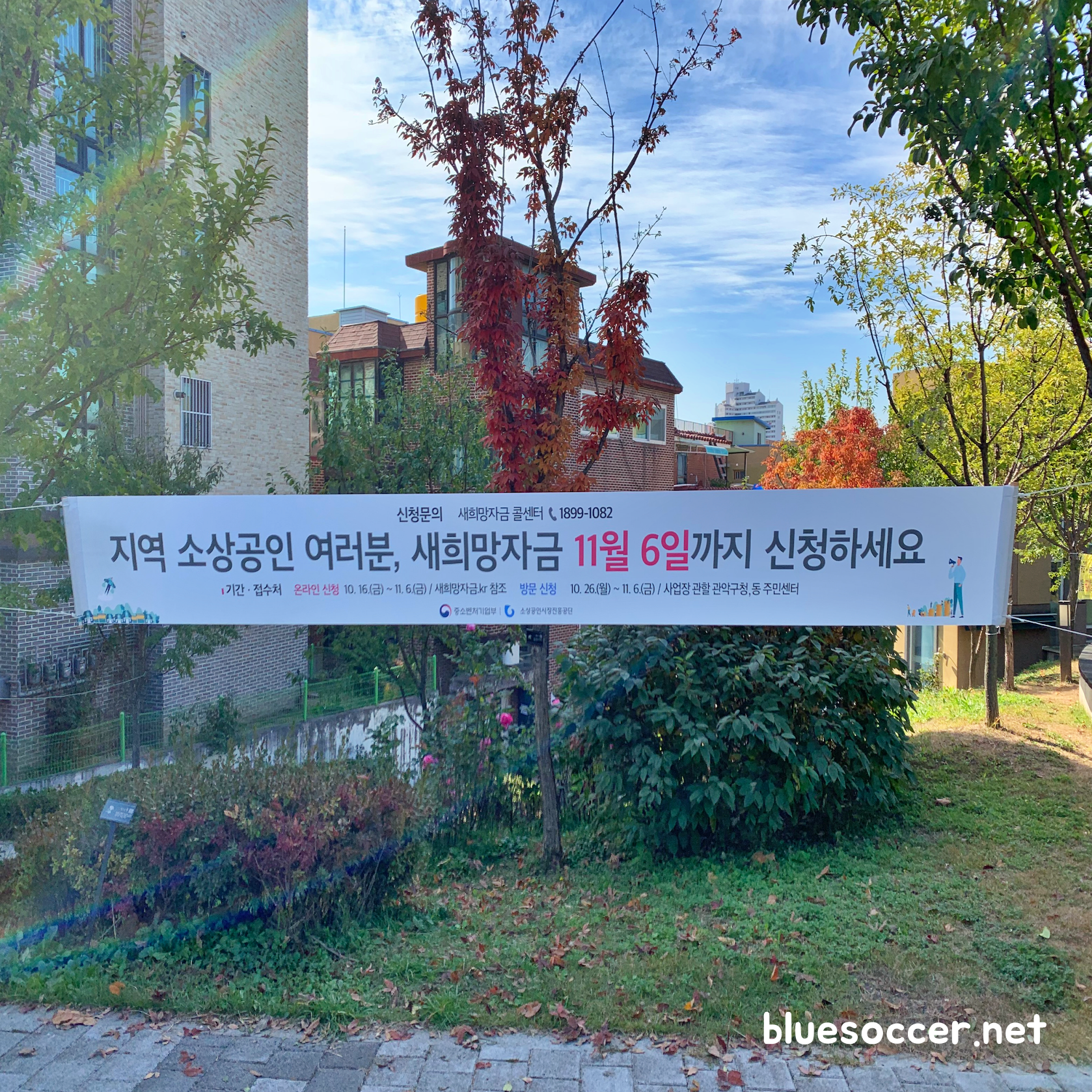 [사진 = 개인적으로 최근에 길거리에서 소상공인 새희망자금 현수막을 봤습니다. 이 현수막을 보면서 해당 글을 작성하게 됐습니다. 이러한 좋은 정책을 많은 분들에게 알리기 위해서 말입니다. 소상공인 새희망자금 신청 기간은 온라인과 오프라인 모두 11월 6일 금요일까지 입니다.(오프라인 운영시간 : 09:00~18:00) 온라인은 지난 10월 16일부터, 오프라인은 지난 10월 26일부터 신청 시작됐습니다. 오프라인의 경우 사업장 관할 구청이나 동 주민센터 방문하셔서 신청하시면 됩니다. (C) 나이스블루]